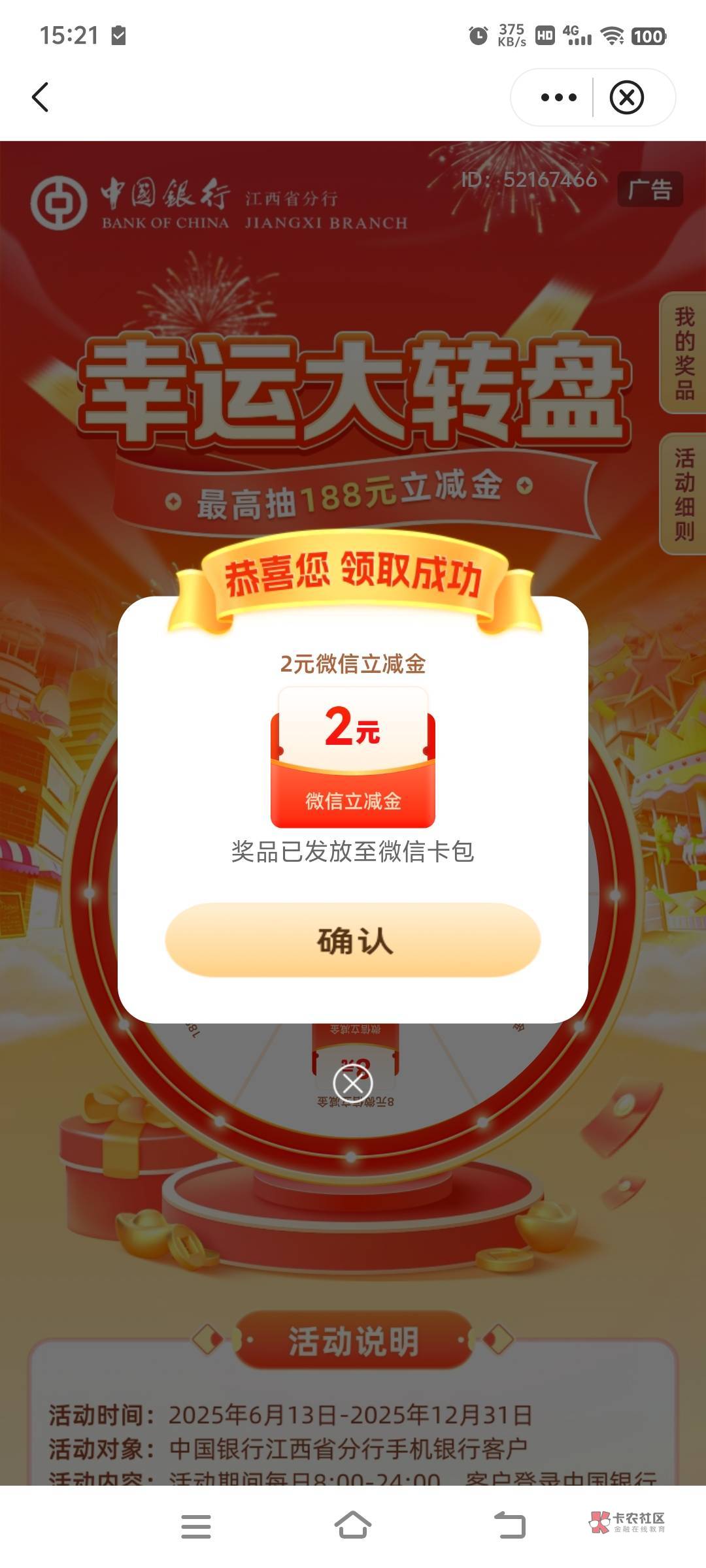 江西中行幸运大转盘抽奖!