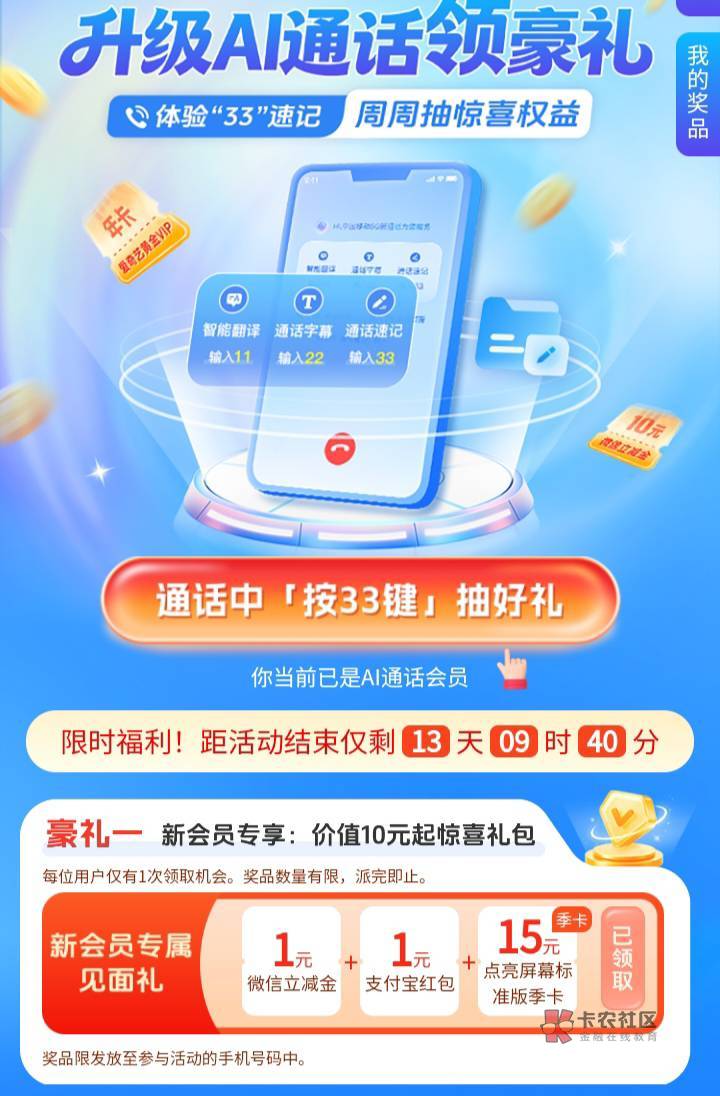 移动5g新通话 微信立减金+支付宝红包