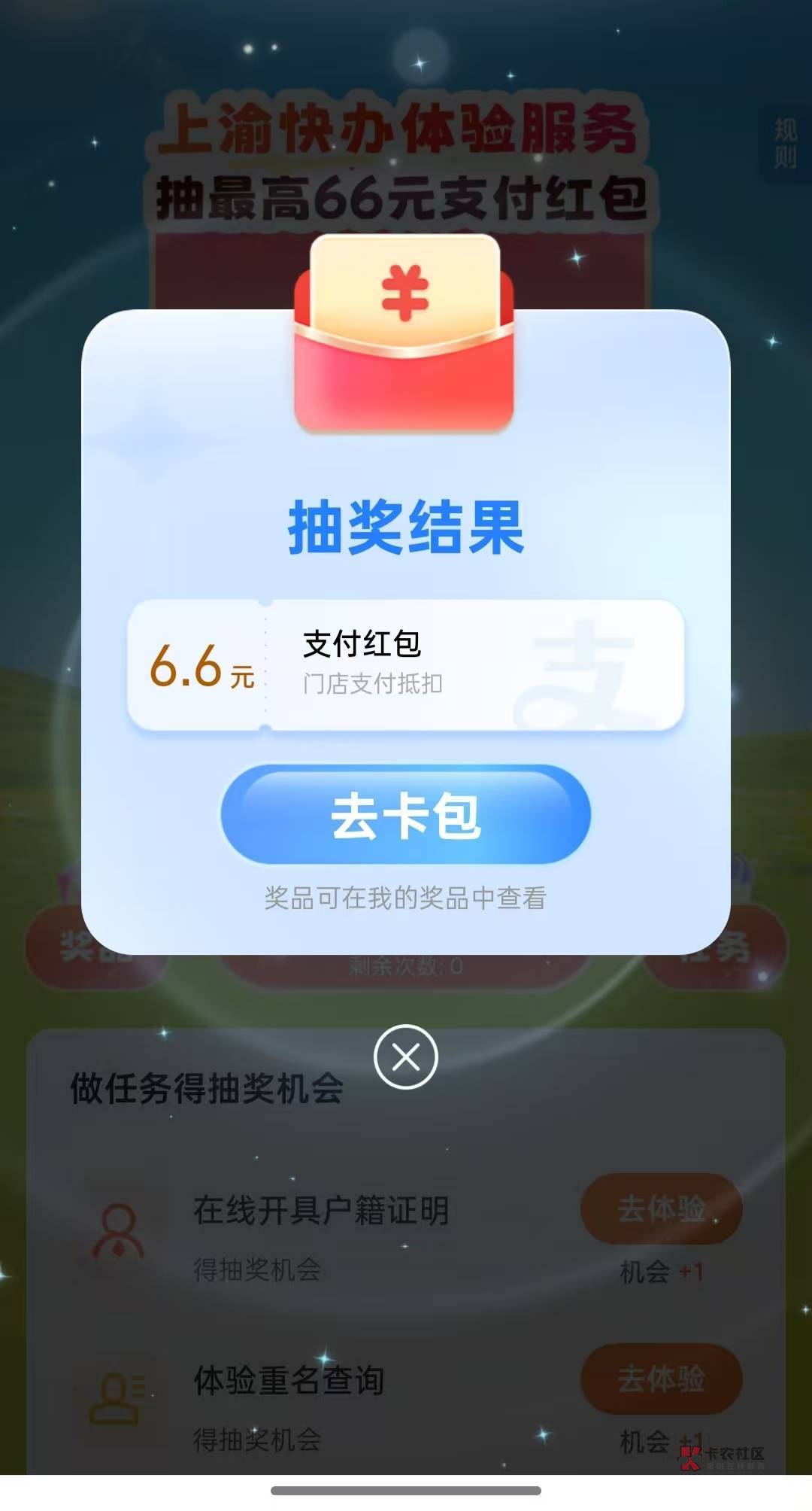 支付宝搜渝快办,有横幅抽红包,任务点下返回就行