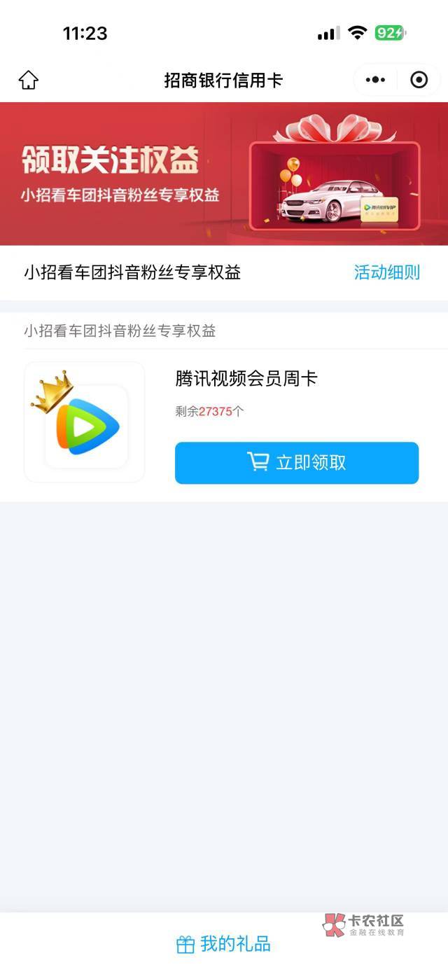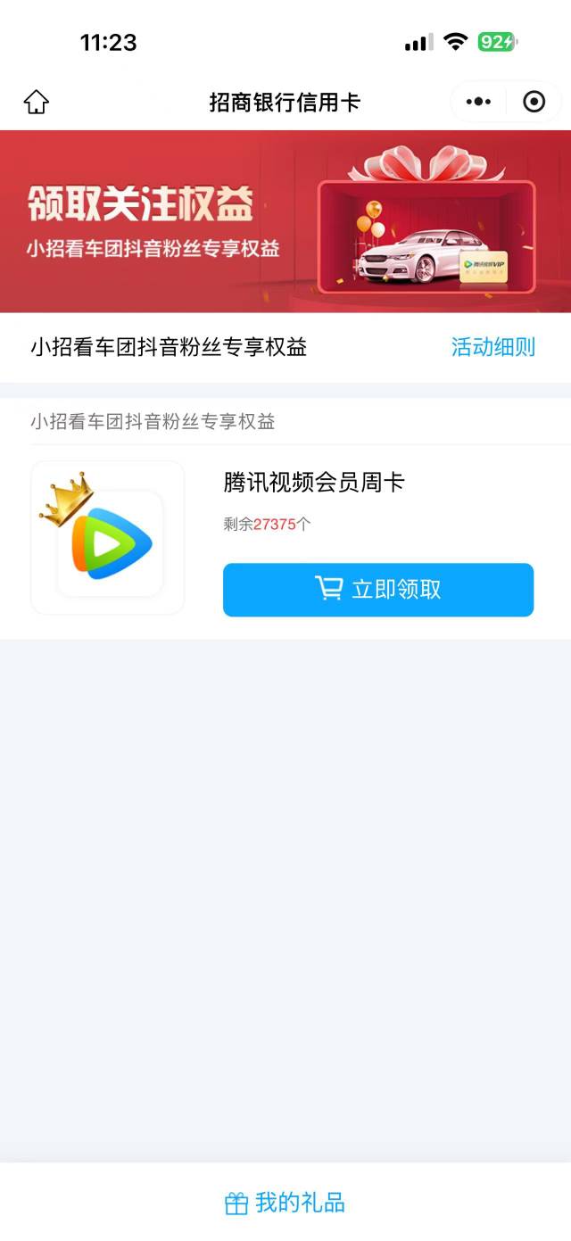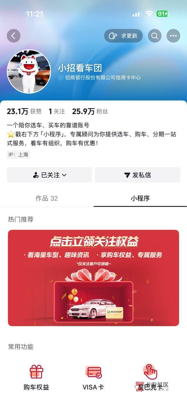 抖音搜小招看车团关注然后小程序预约一下送腾讯周卡,昨天预约的今天都来短信了。代充1日7.8