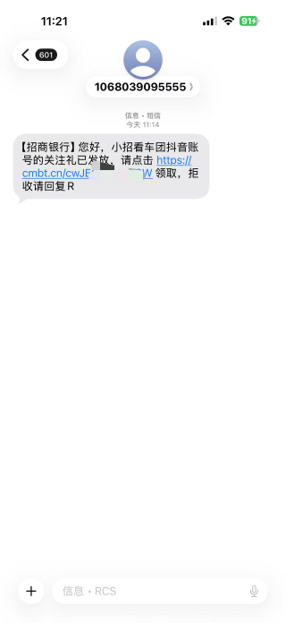 抖音搜小招看车团关注然后小程序预约一下送腾讯周卡,昨天预约的今天都来短信了。代充