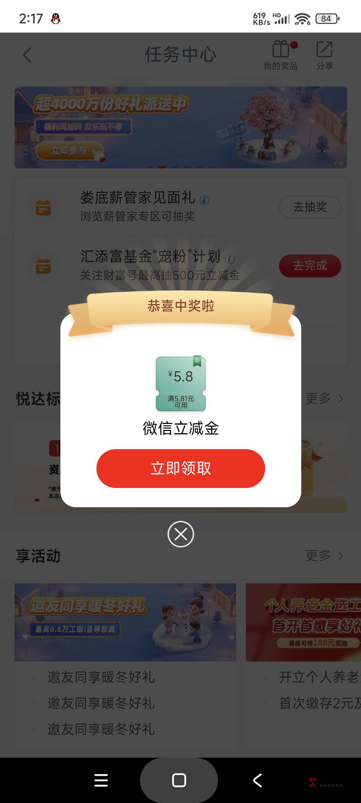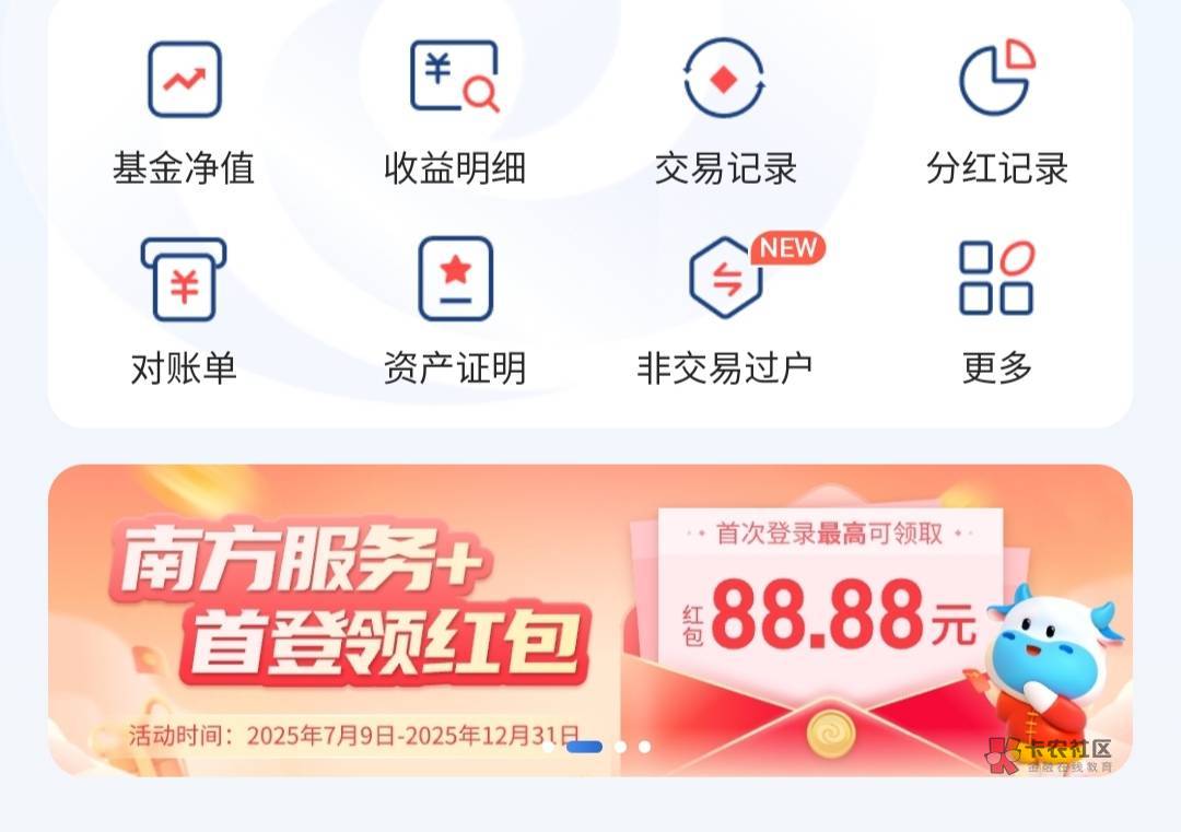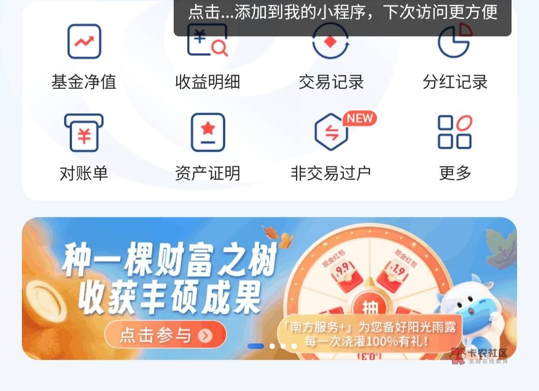 小程序:南方基金服务+,首页两个横幅,进去抽
