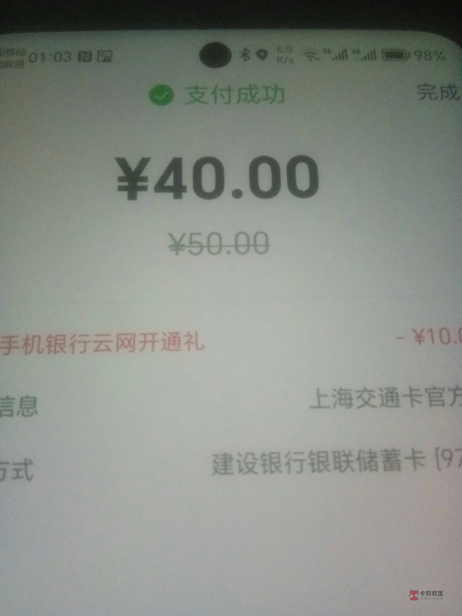 上海交通卡,建行云网10的补了