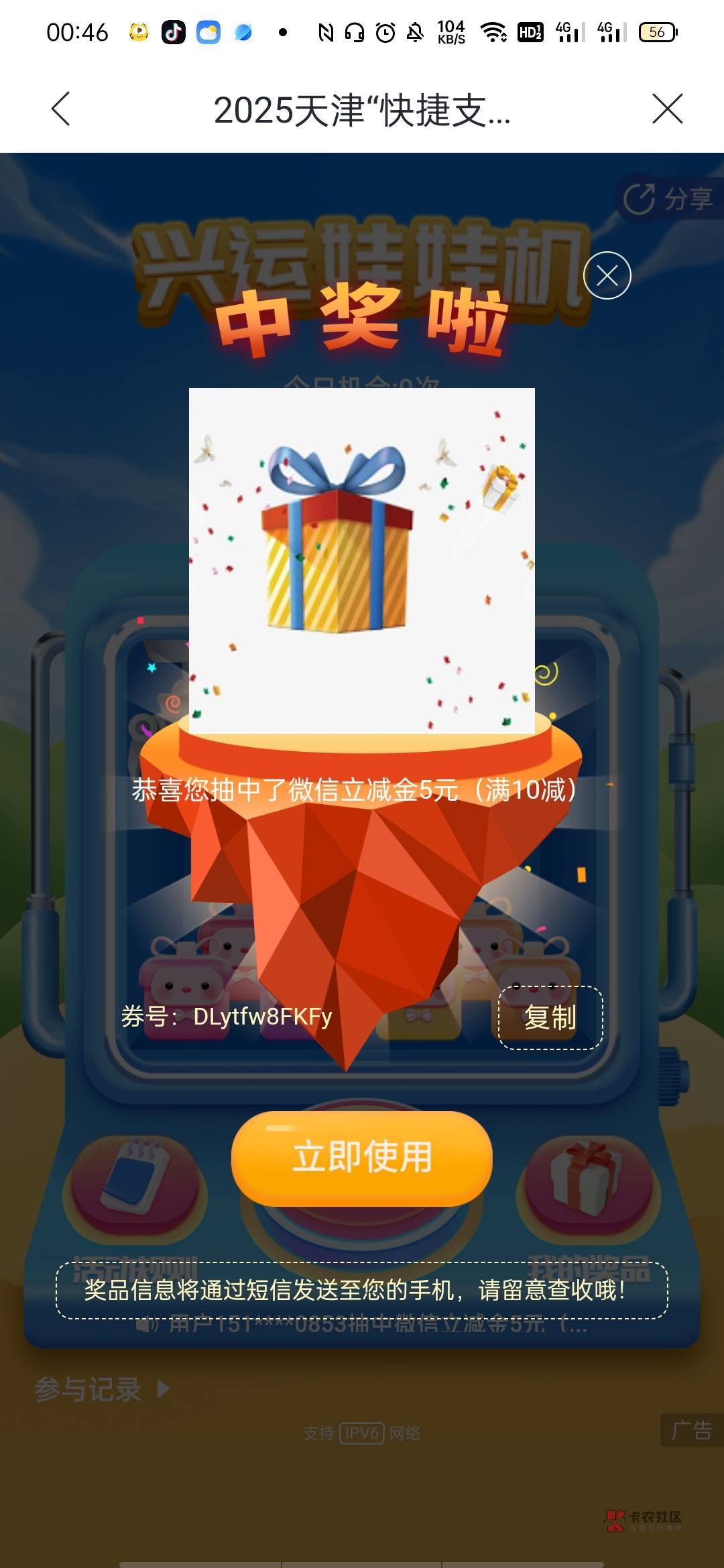 建行的云网笔笔减,好像是建行app5次,建行生活app5次