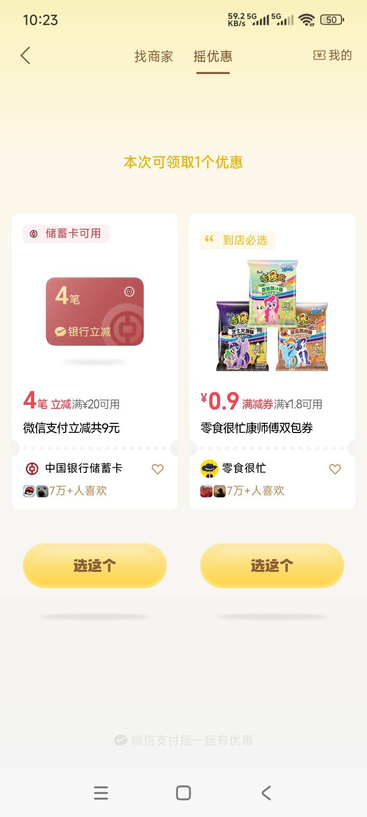 微信摇一摇支付立减共9毛