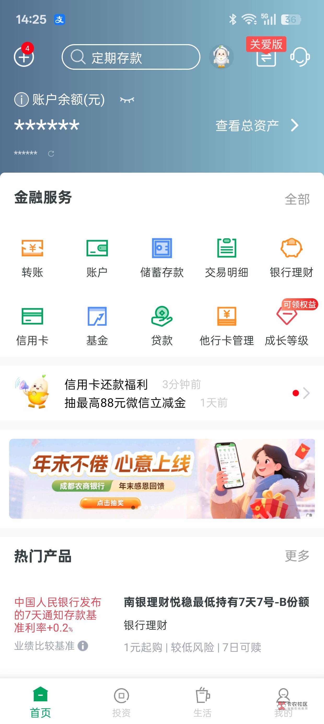 成都农商银行app横幅,抽立减金 最大100 保底5