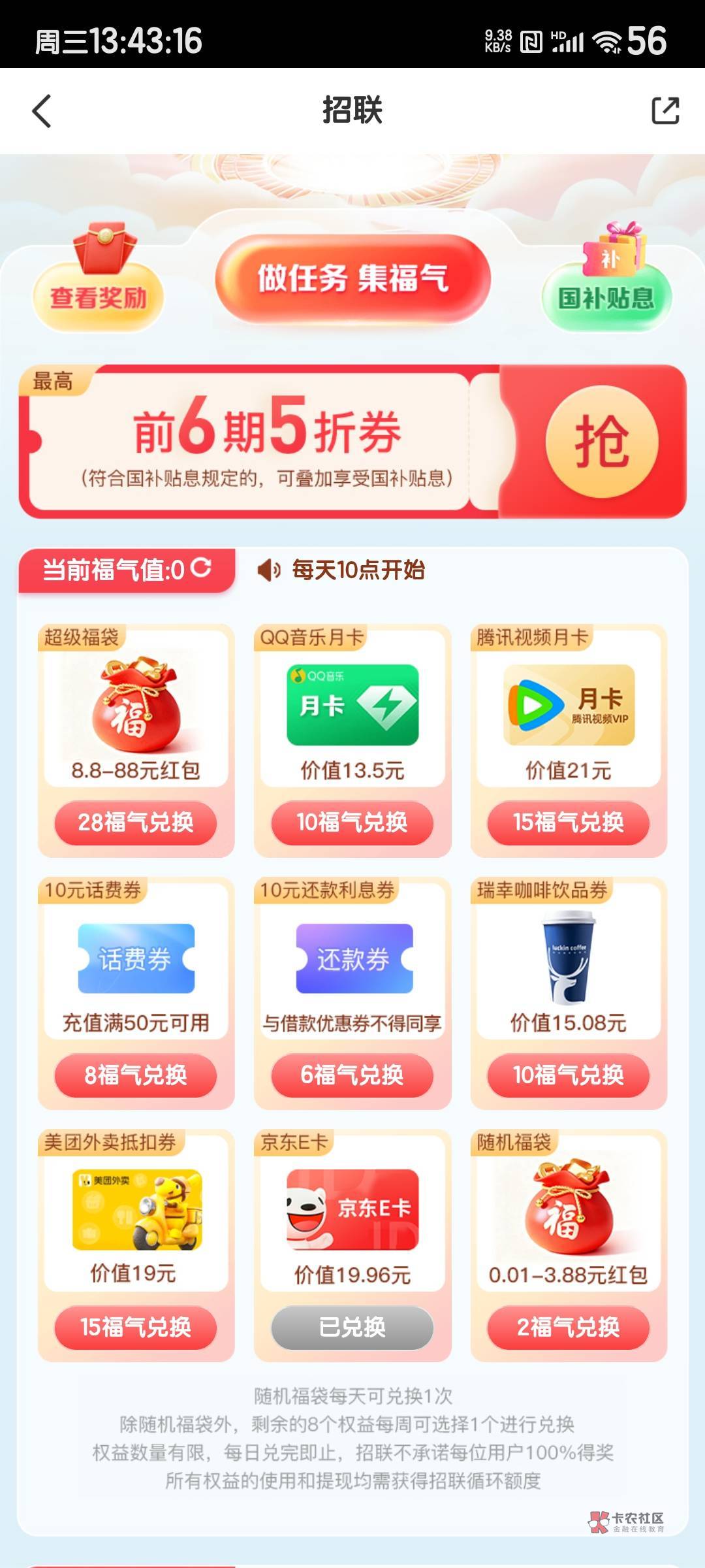 招联金融 我的-券 进去下面有这个活动 做做任务签到,每天1福气 一个月卡应该没问题