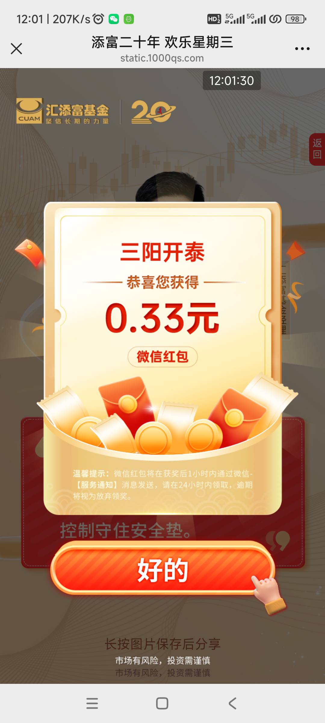 汇添富基金CUAM??右下,欢乐星期三,好多0.33