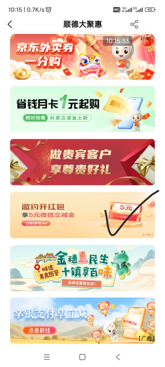 农行佛山城市专区,顺德大聚惠,有个邀约开红包,我不符合,你们去看看吧