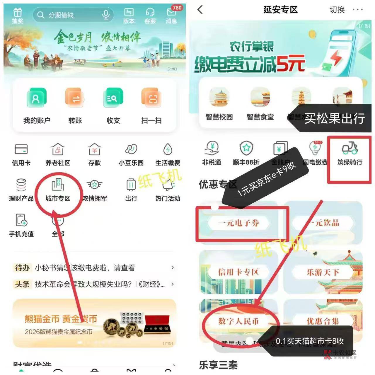 陕西开户的农行 特邀才行 1元电子券京东e卡10 筑绿骑行,松果出行 数字人民币,肯德基