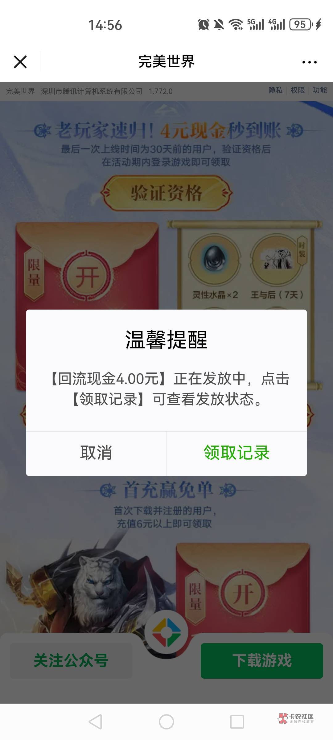 完美世界回归,我刚领还有,自己测试,谨慎!