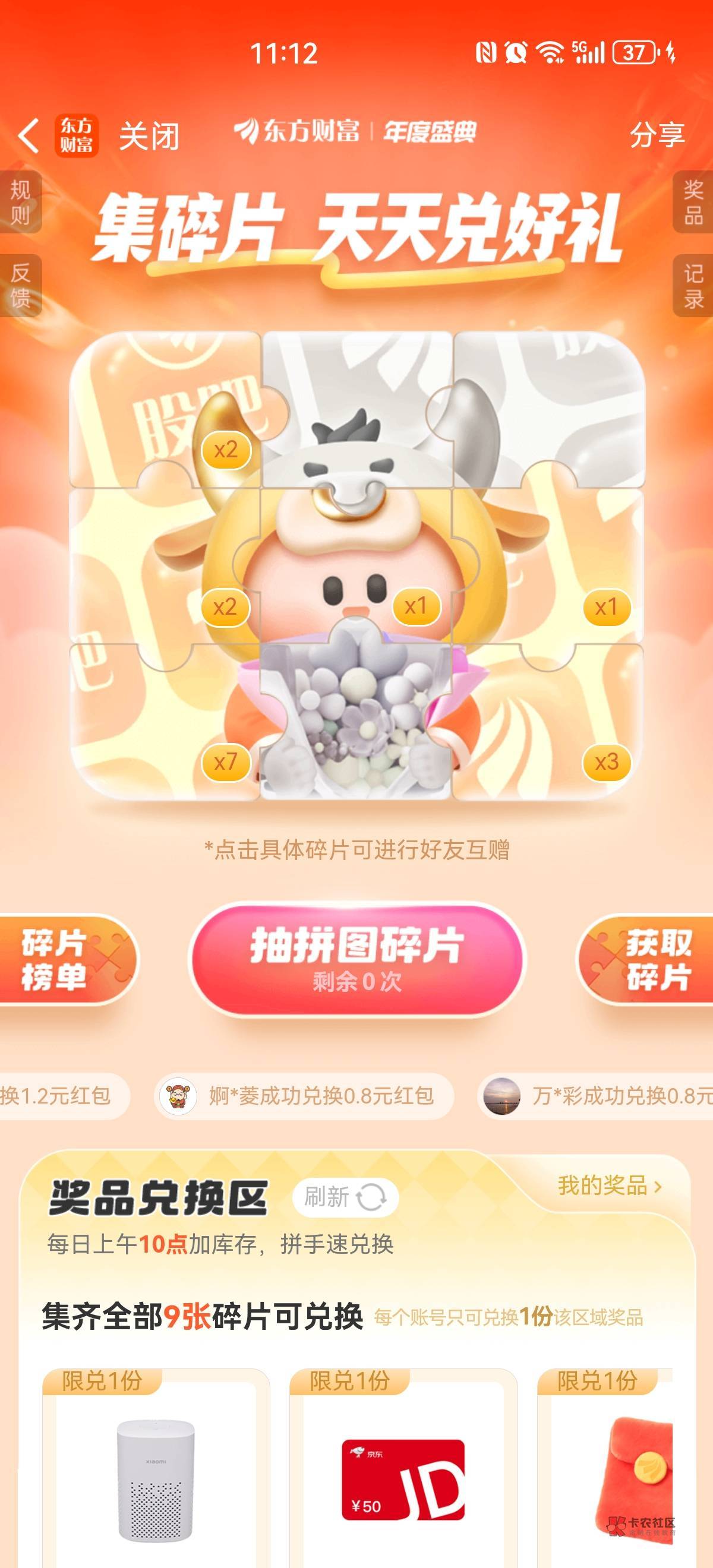 东方财富 集碎片天天兑好礼 5.7.9张碎片都能兑换