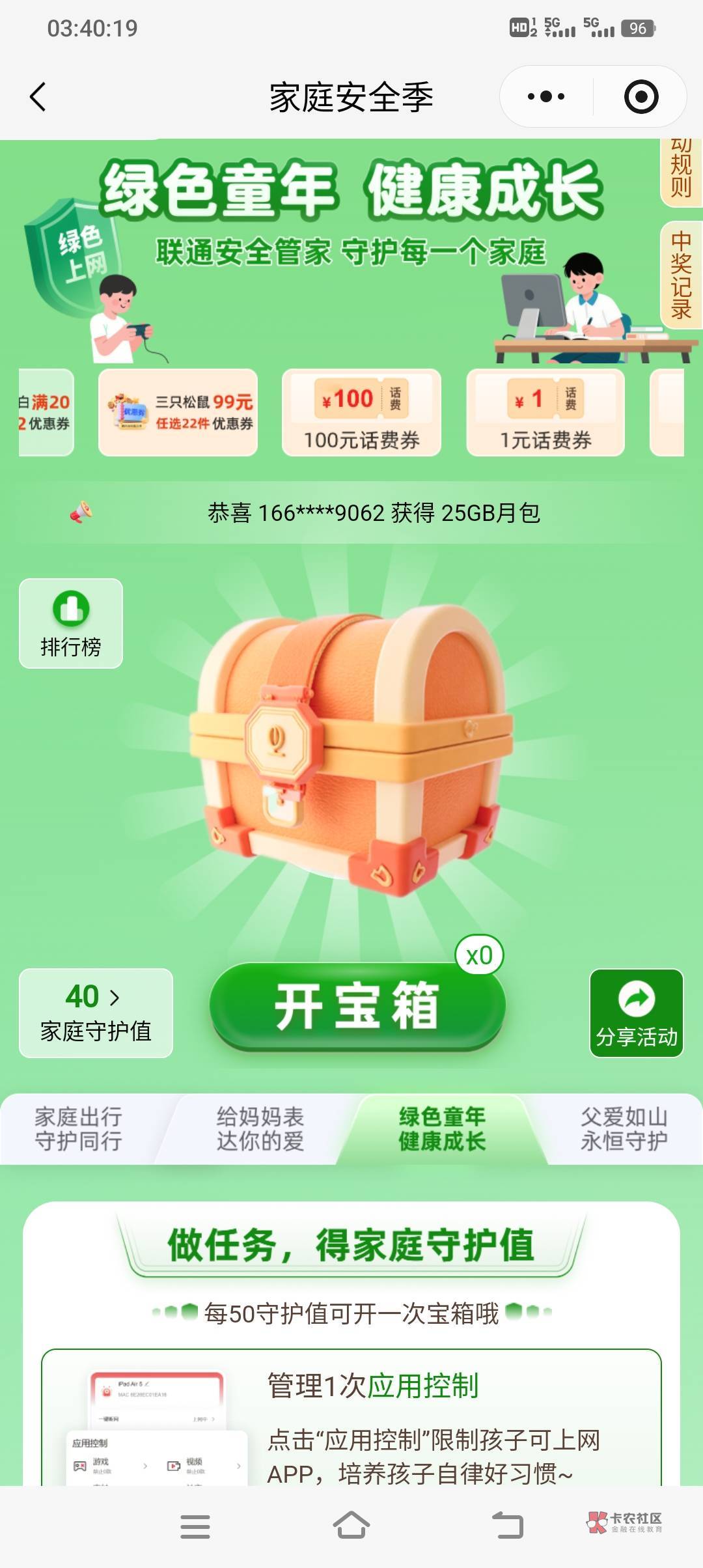 微信小程序 联通助理 做任务抽奖,话费券中了秒到