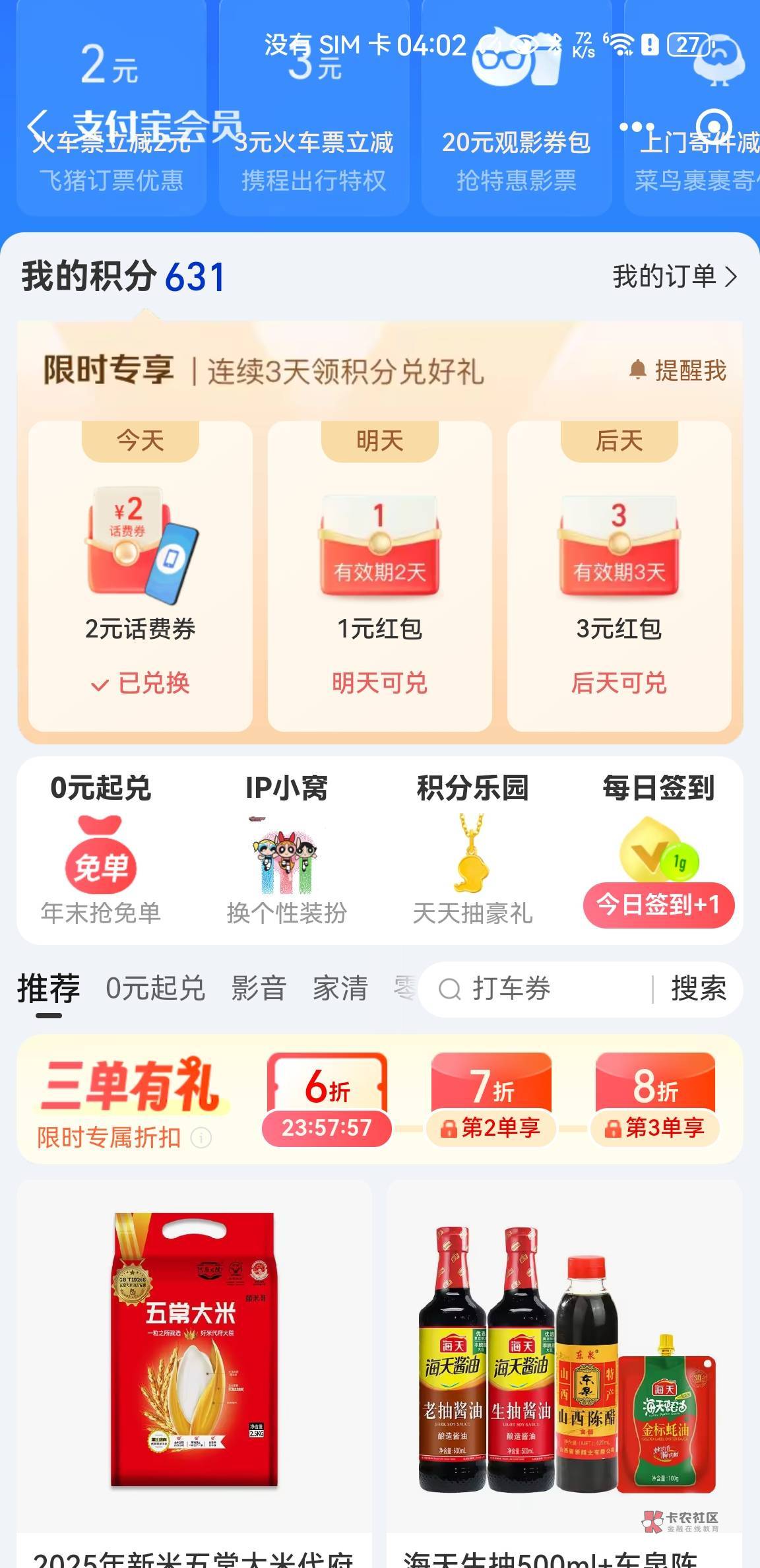 支付宝会员三天4毛速度冲