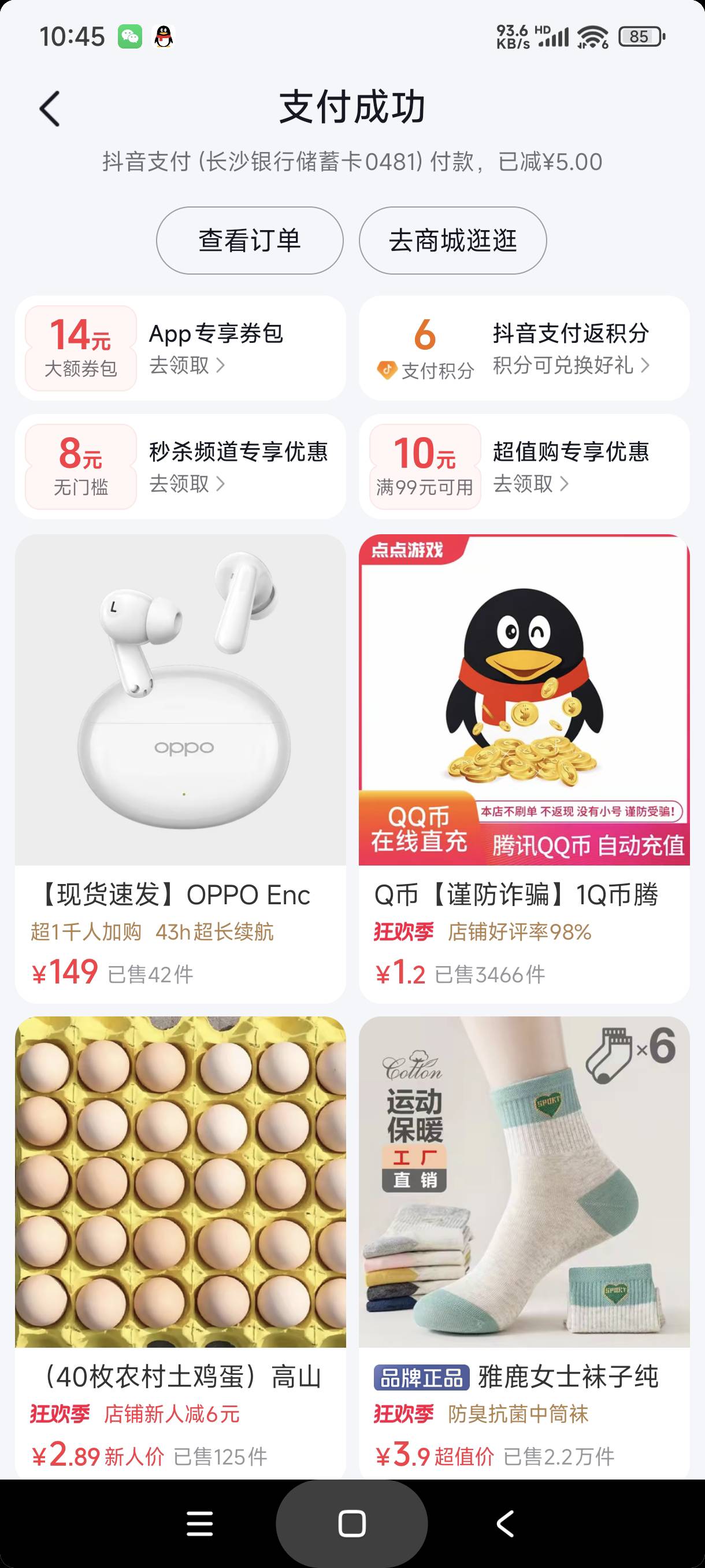 抖音首绑长沙银行(必须实体卡)有五块钱无门槛,买e卡