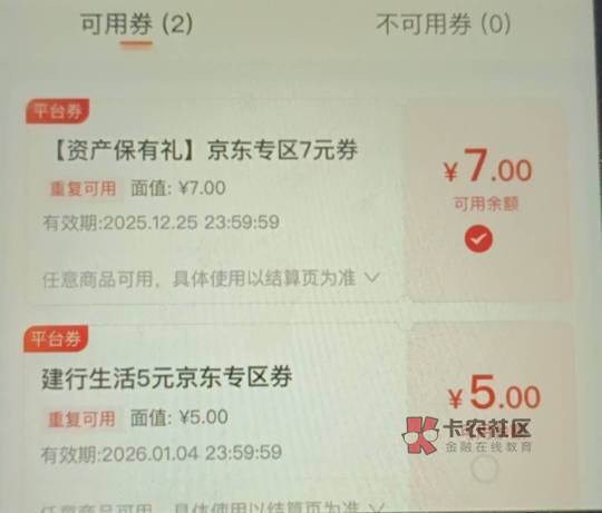在建行APP的“惠省钱”活动里领一张5元券,然后打开建行生活APP,搜“京东专区”用掉这张券兑换E卡。