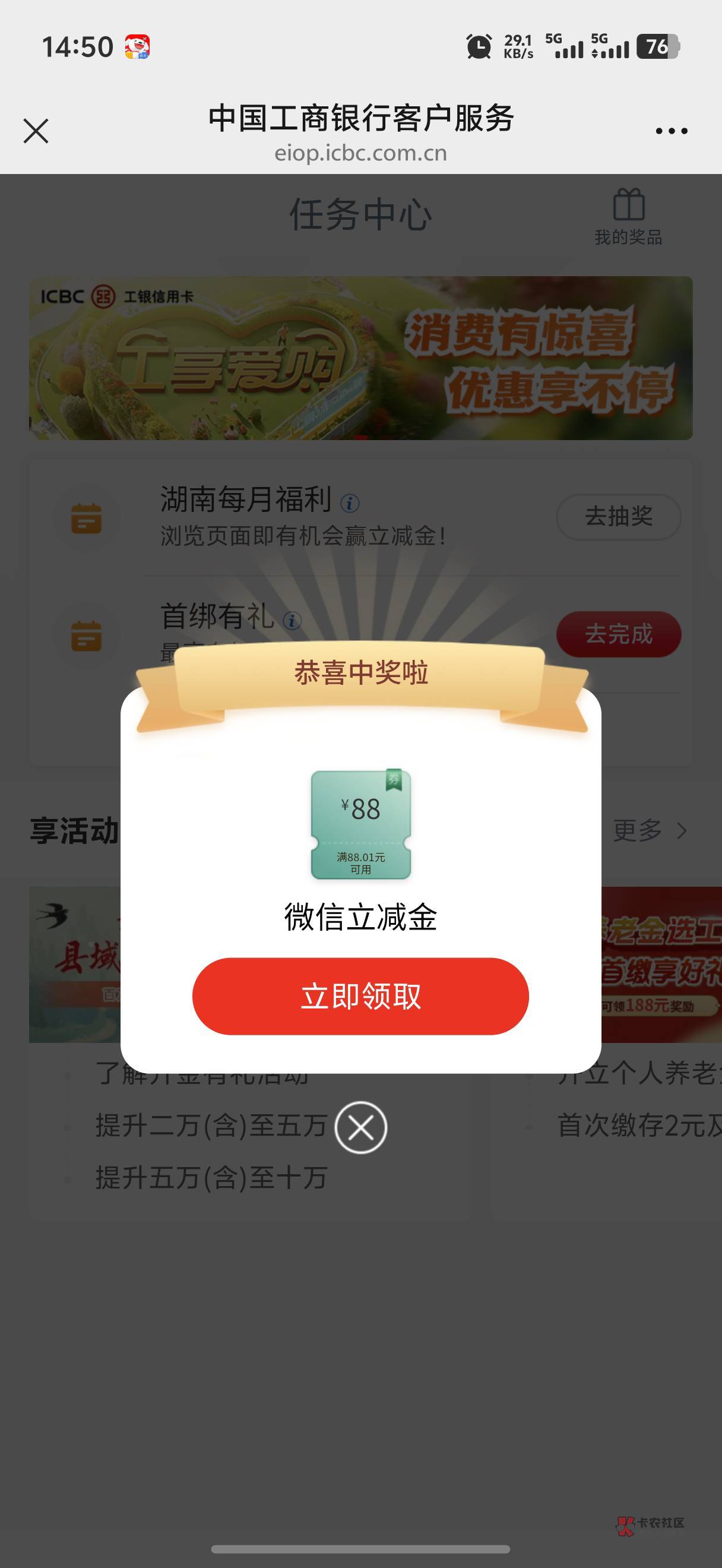湖南没白飞啊 无聊点了那个公众号每月福利中了88