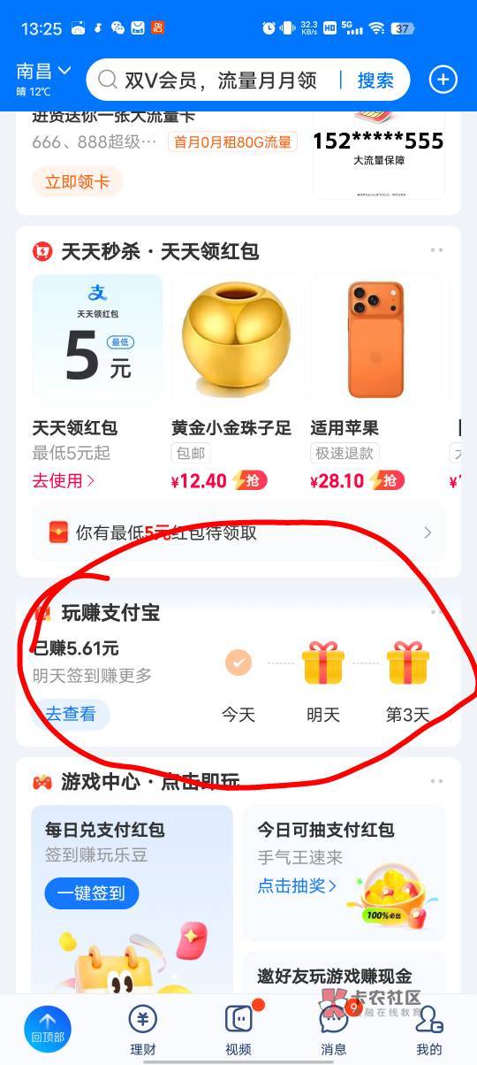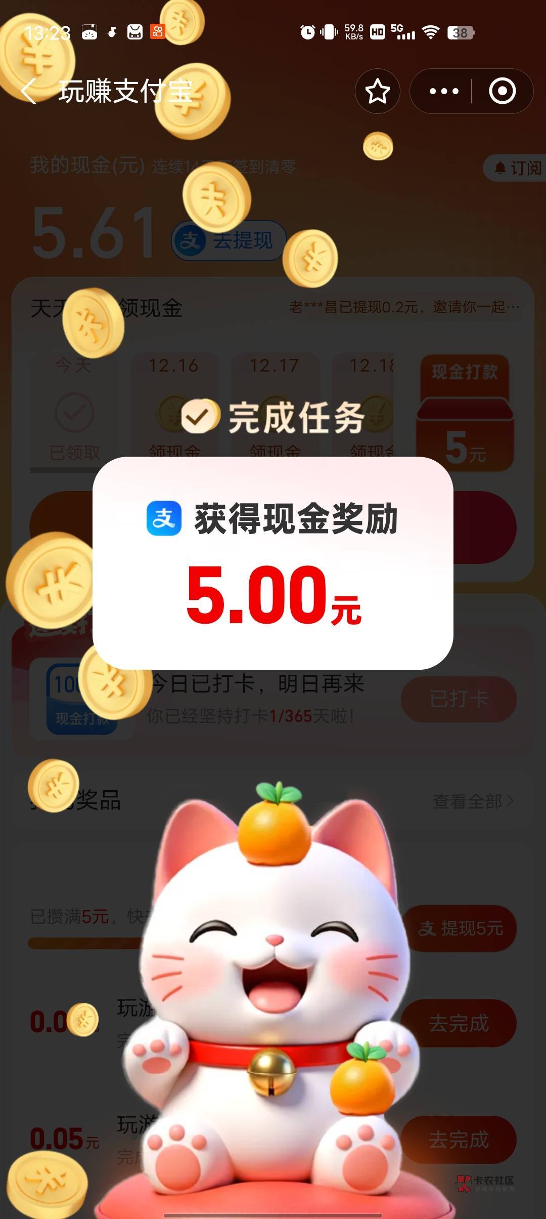 支付宝,入口玩赚支付宝,有个下载蚂蚁阿福的任务,登录直接返回支付宝给5