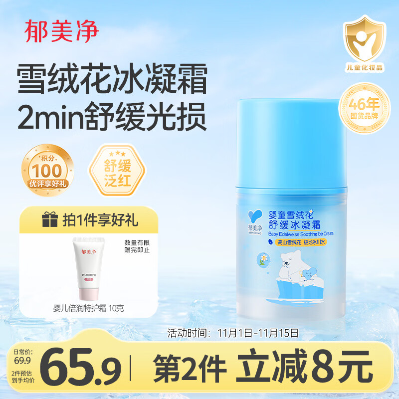 郁美净婴童雪绒花冰凝霜50g 有首单,4.91