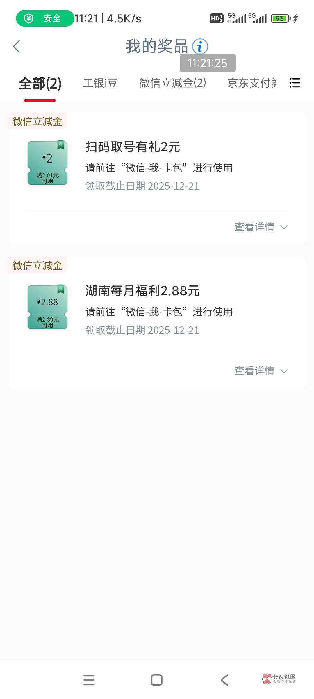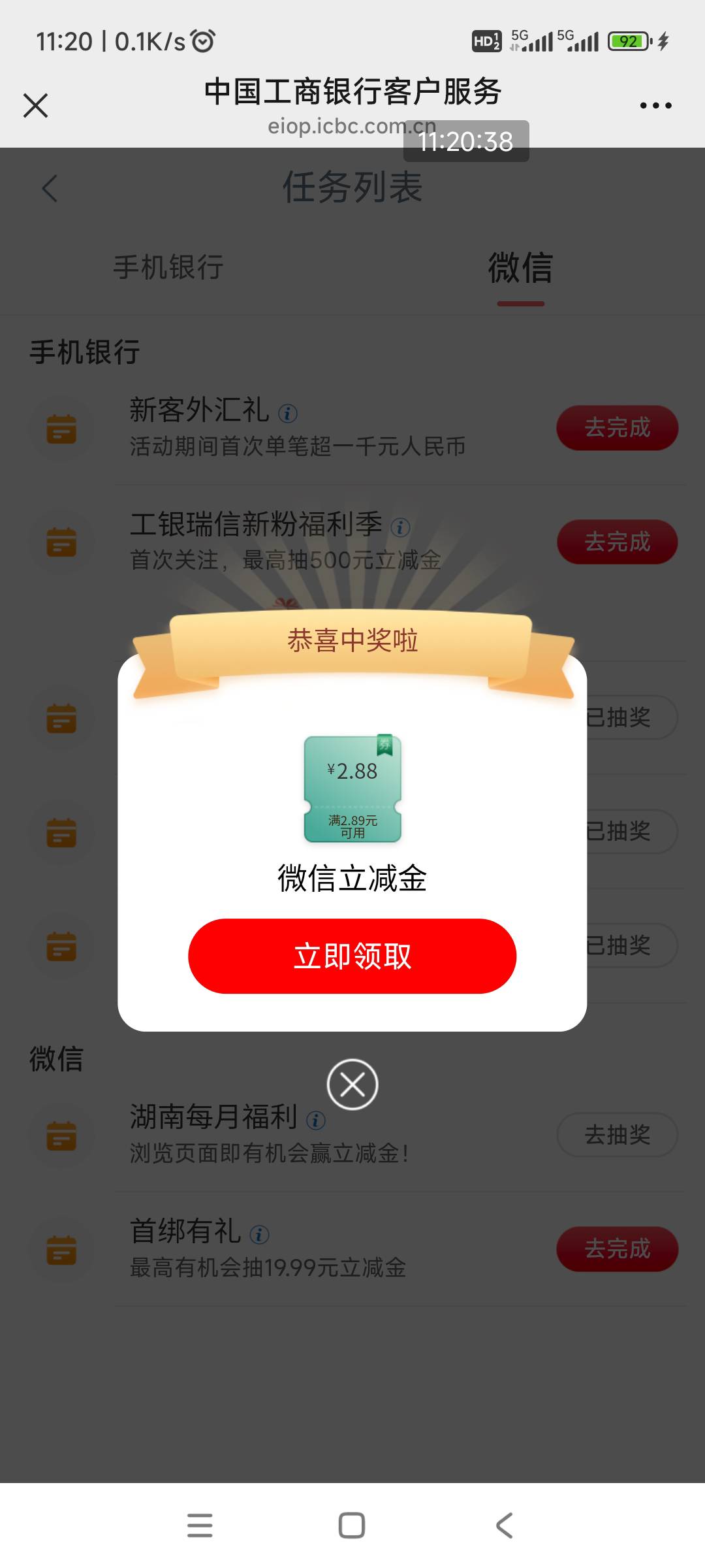 工行飞到湖南常德没吃到鱼,烂虾也弄了几毛,扫码取号2块,每月福利2.88块,通用,总