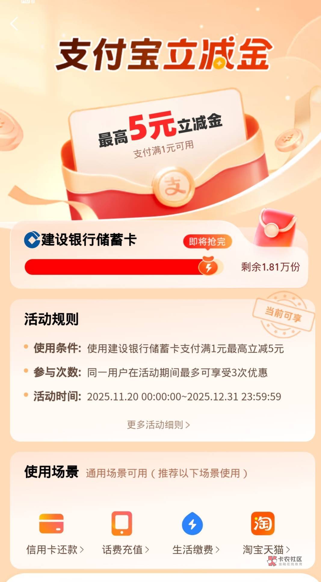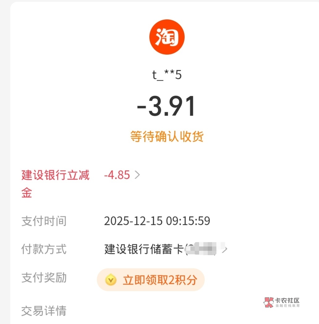 广西建行咸鱼试一下,最多减五 我减了4.85