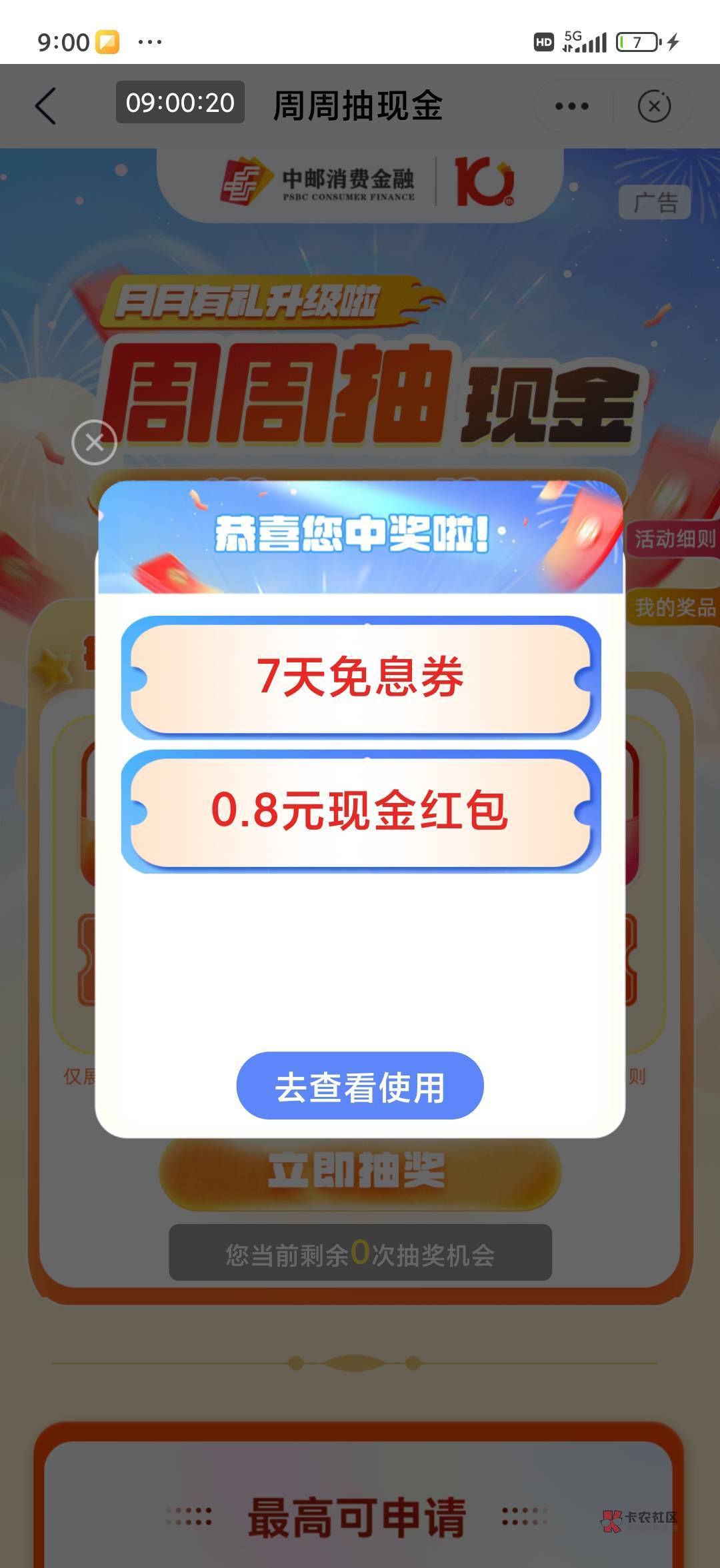 邮储搜邮你贷,横幅第三个抽现金