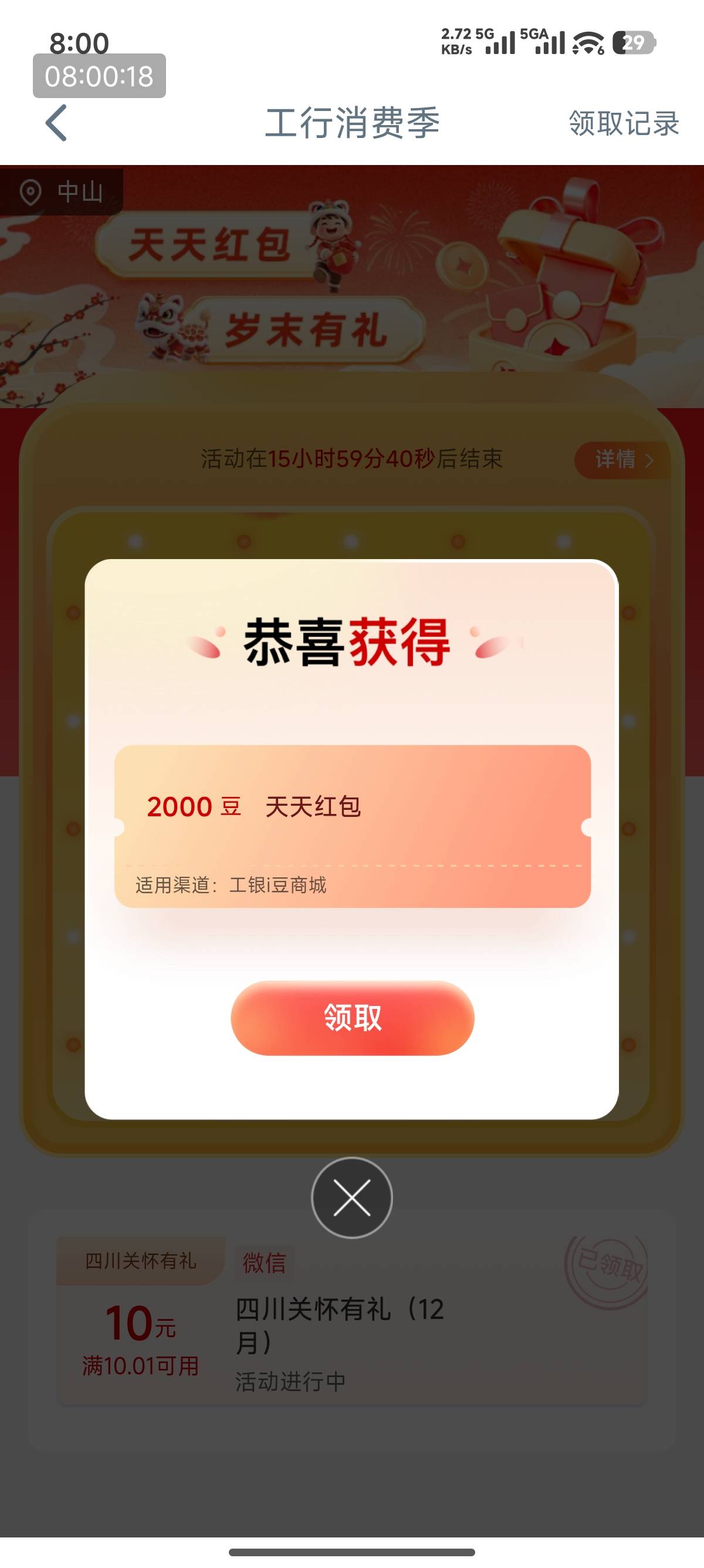 工行消费季每天抽一次,好像还有,之前次次都是100豆,这次2000豆
