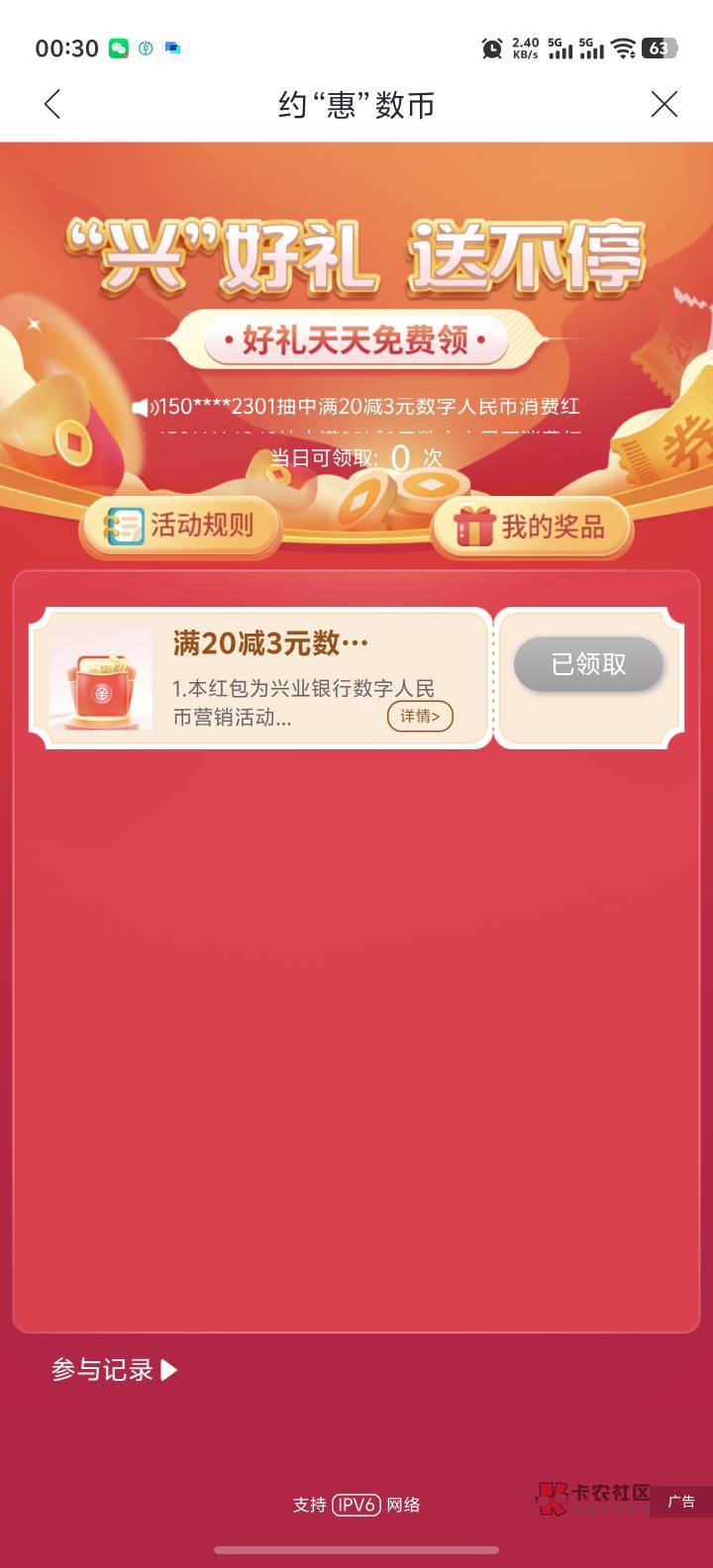 中行白金卡30毛记得领