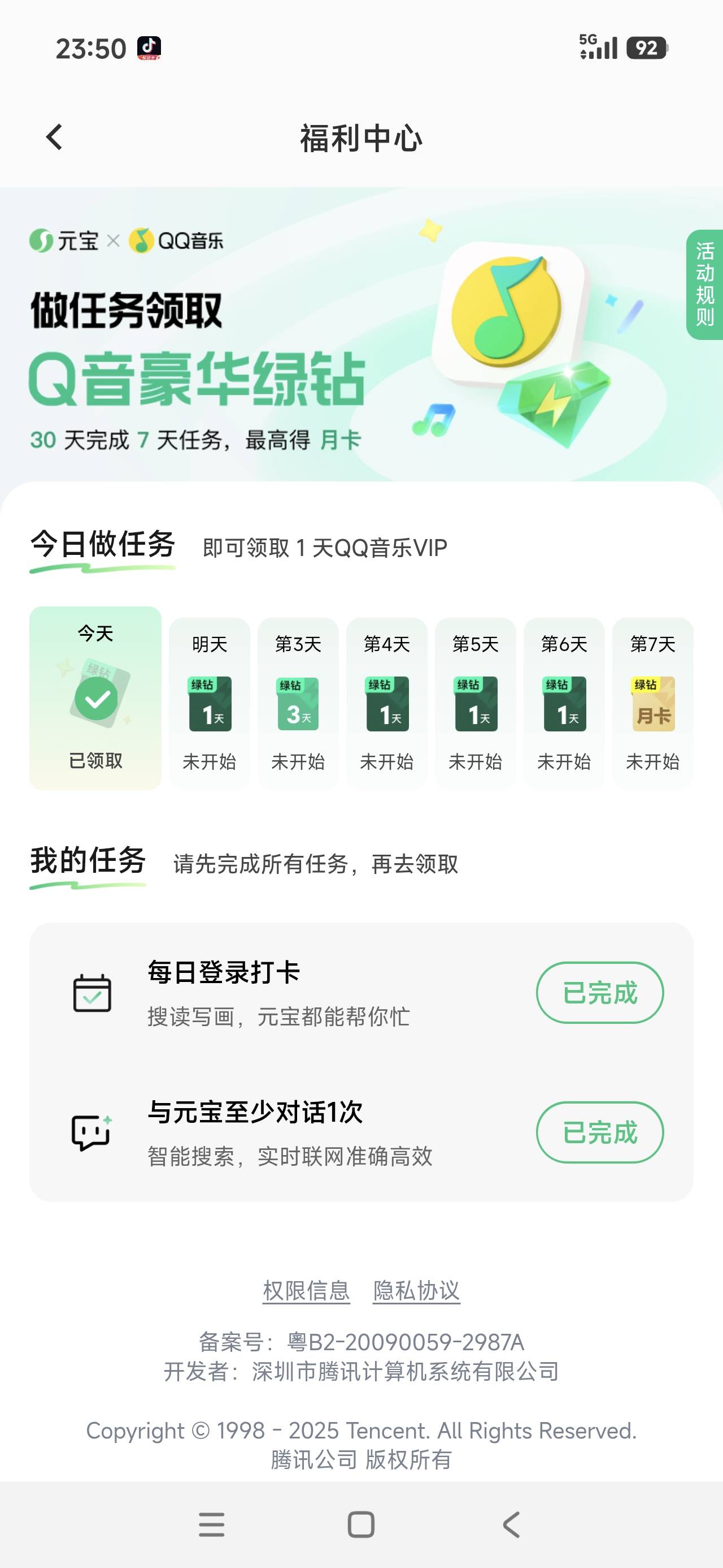 qq音乐里面下载元宝,元宝qq登录,打卡一个星期可以领月卡,听歌的老哥可领