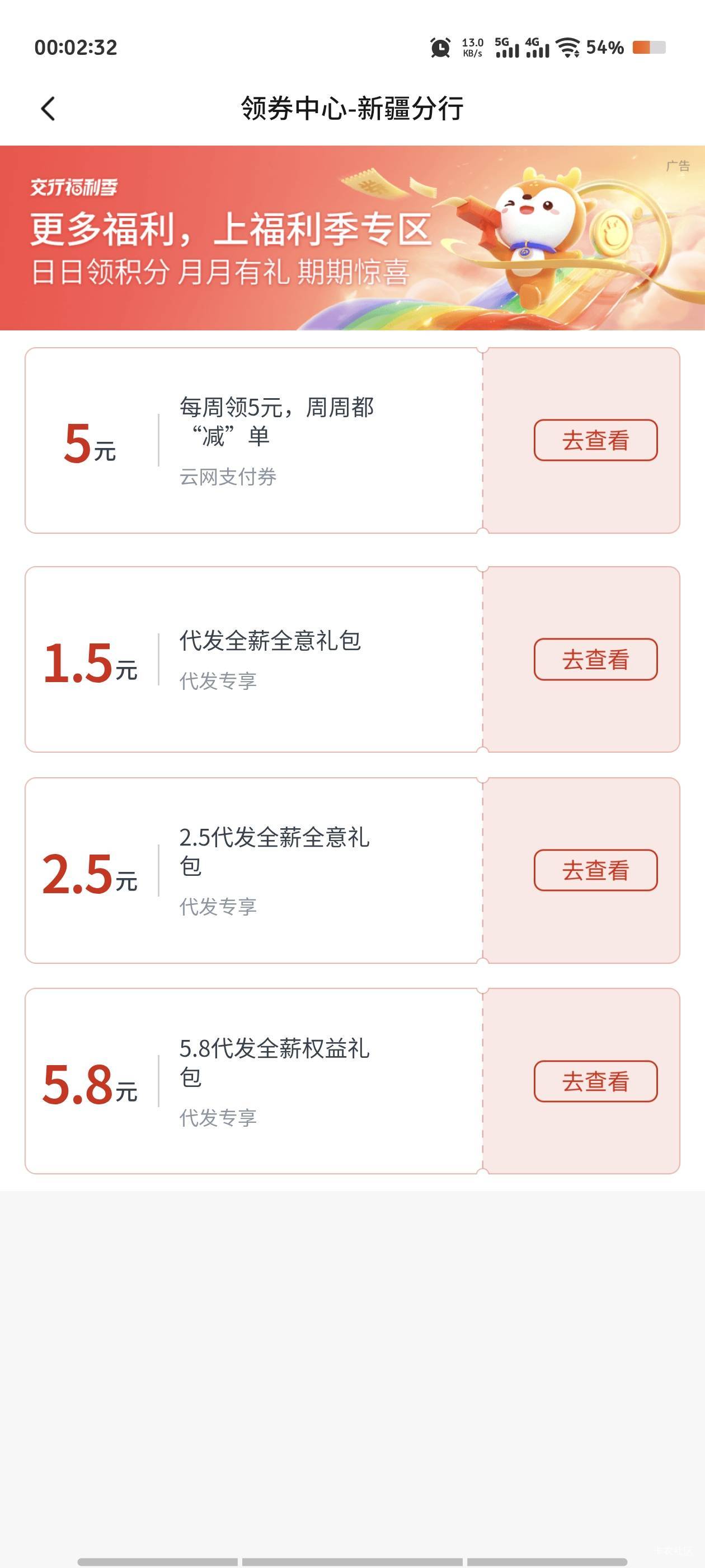 交行搜领券中心现在有瑞幸券,可以叠云闪付10-3