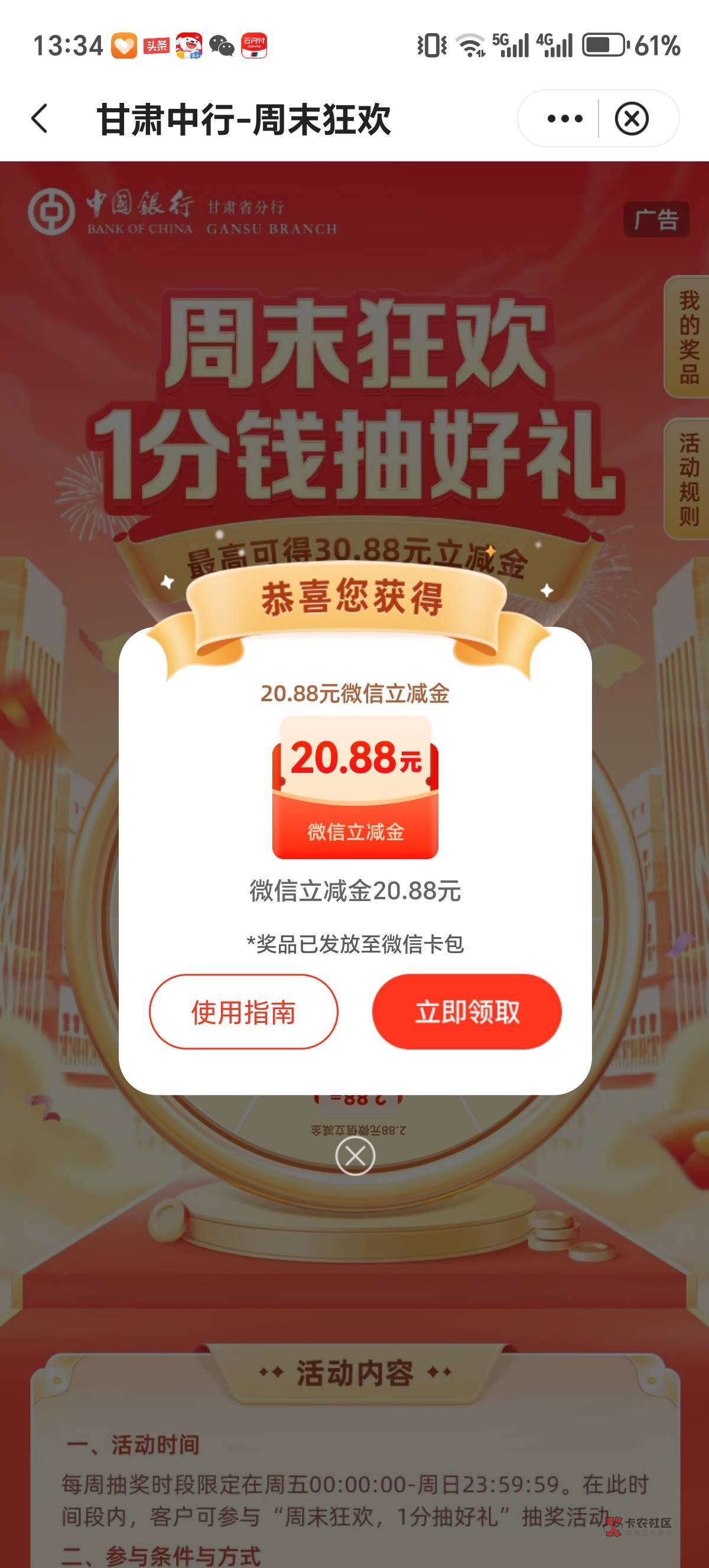 建行提示领完了不用怕,明天再去领就行了,希望是100