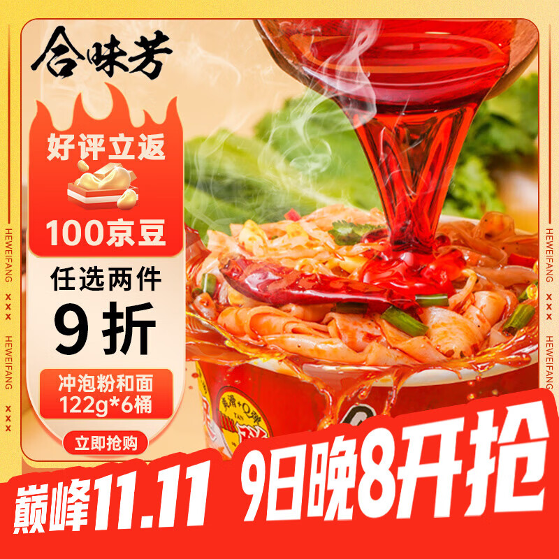 合味芳冲泡速食宽粉加面122g*6桶,8件41