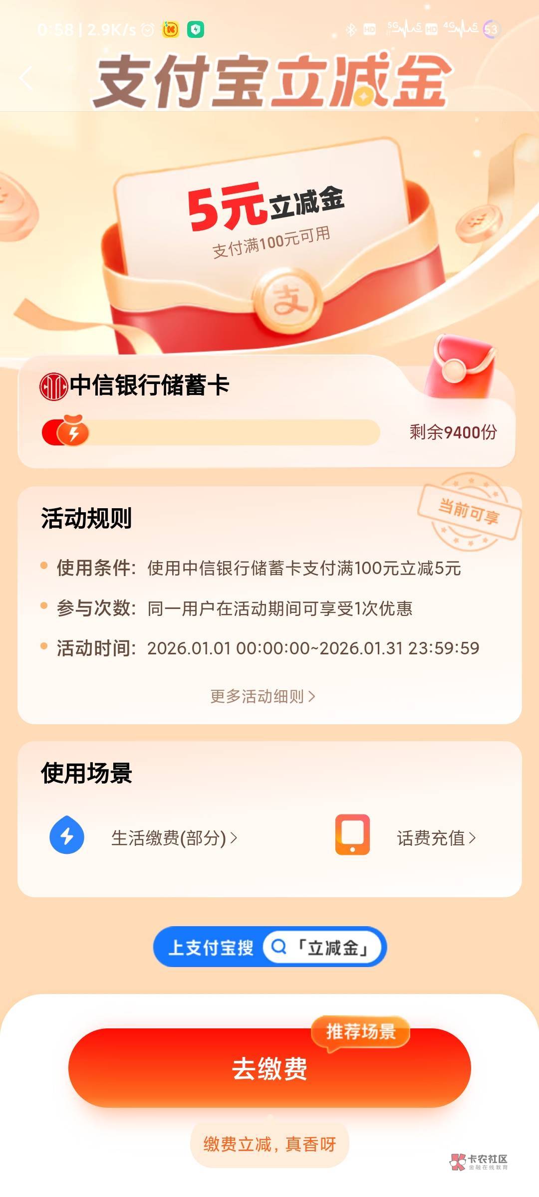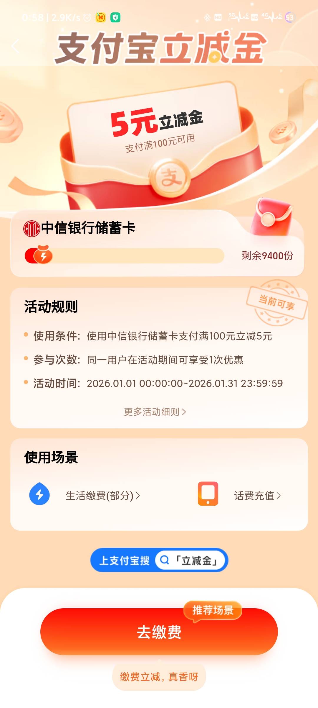 支付宝中信银行上海支付满100元立减5元活动 ...
