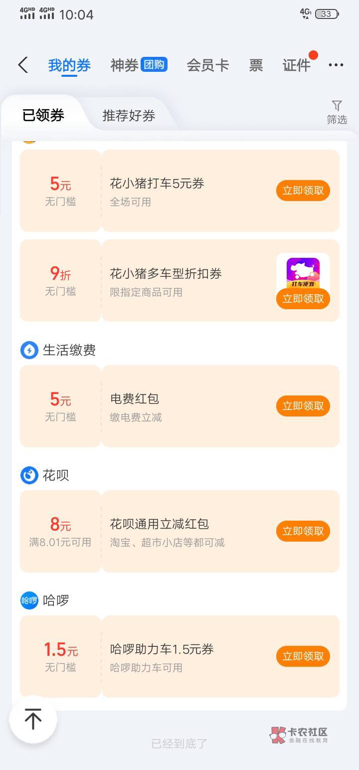支付宝-卡包 推荐好劵下拉有8花呗红包可以直接领,开通了花 ...