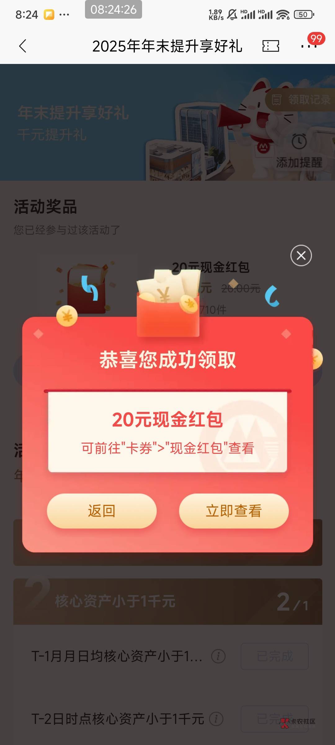 北京招商一类卡,转入一万,第二天app搜索年末领30+20红包。先领30再领20,这是bug本