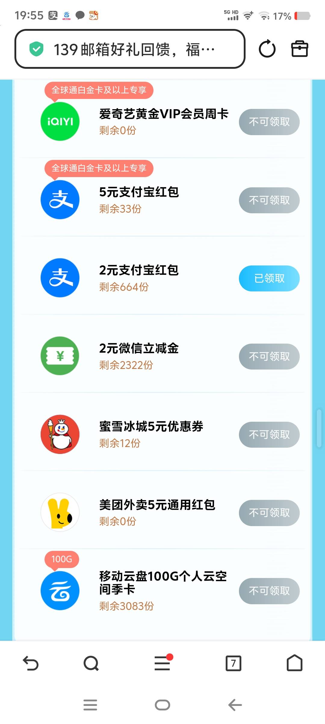 139邮箱【好像只能全球通可以领】