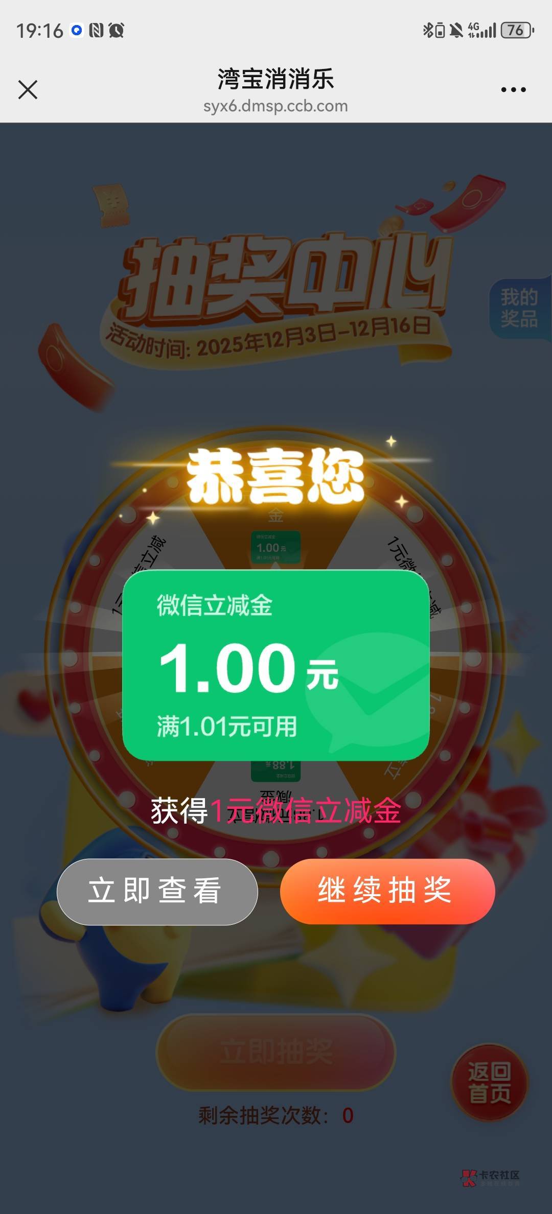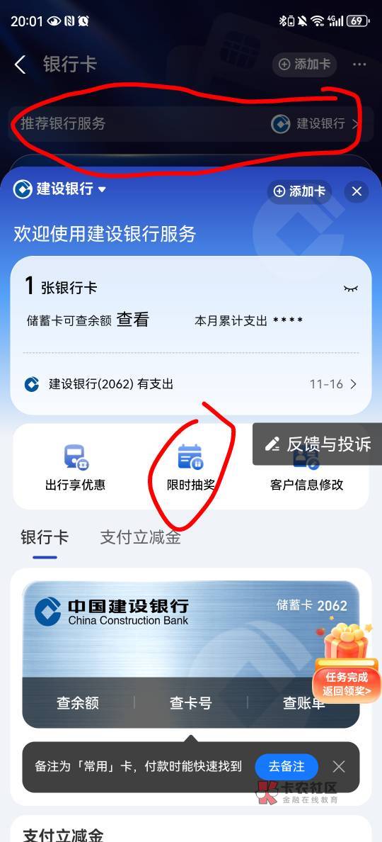 支付宝——YHK——推荐银行服务——限时抽奖——挑战建行App抽奖