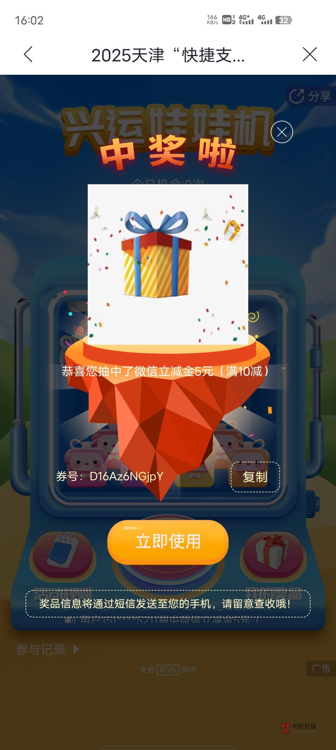 皖邮惠小程序,首页滑轮答题有礼,抽1/3/50,可多号料子,是立减金momo可T,不知道限