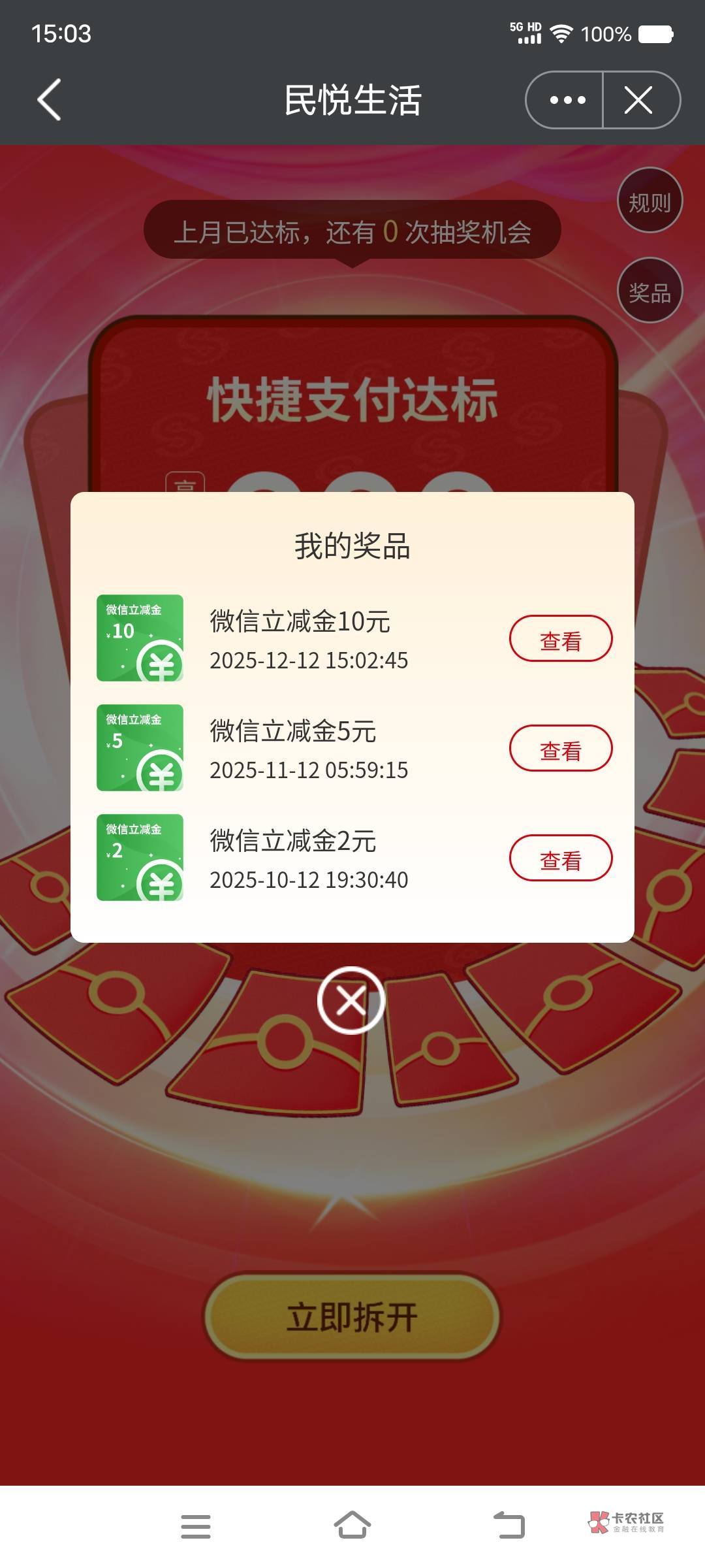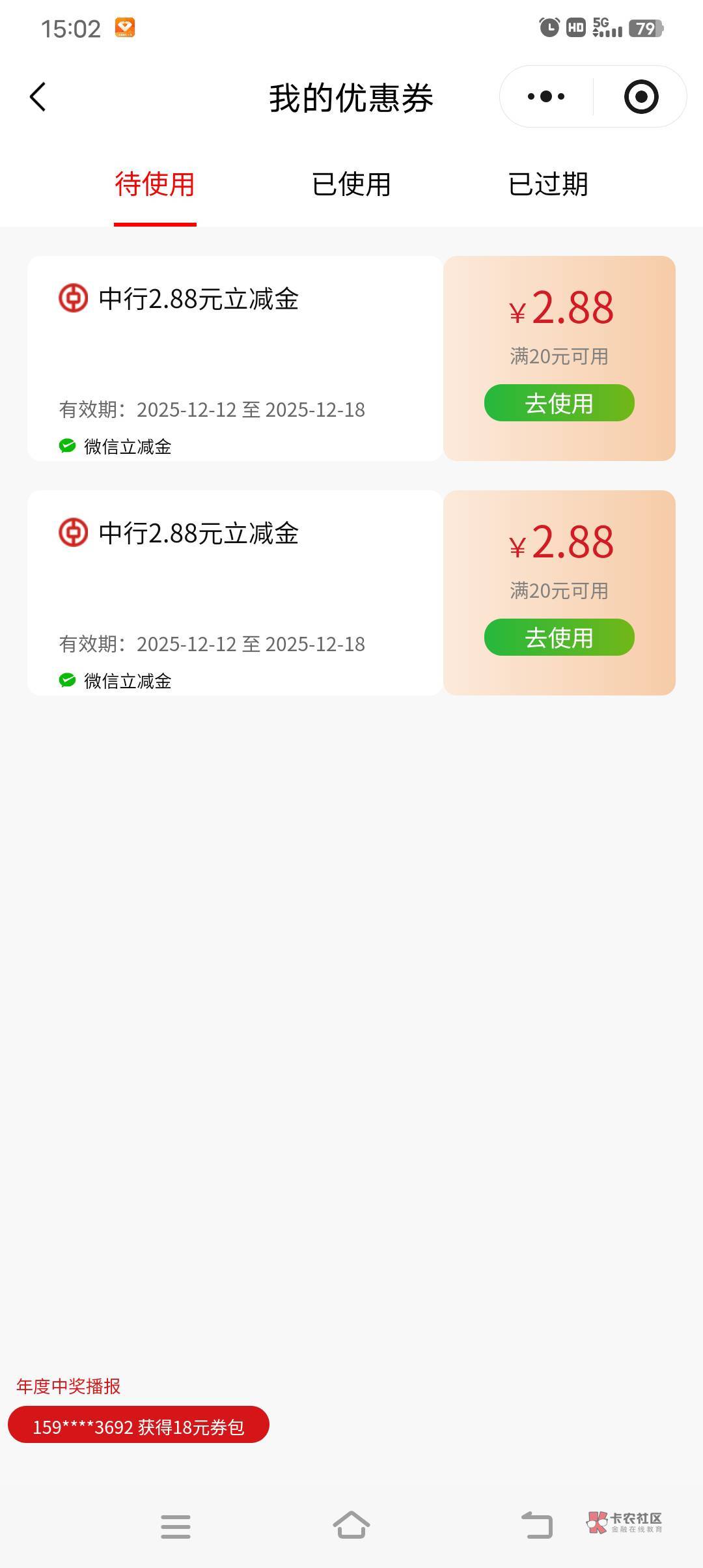 【中国银行】您有5元微信立减金已到账!12月31日前登录中国银行手机银行-我的-我的权