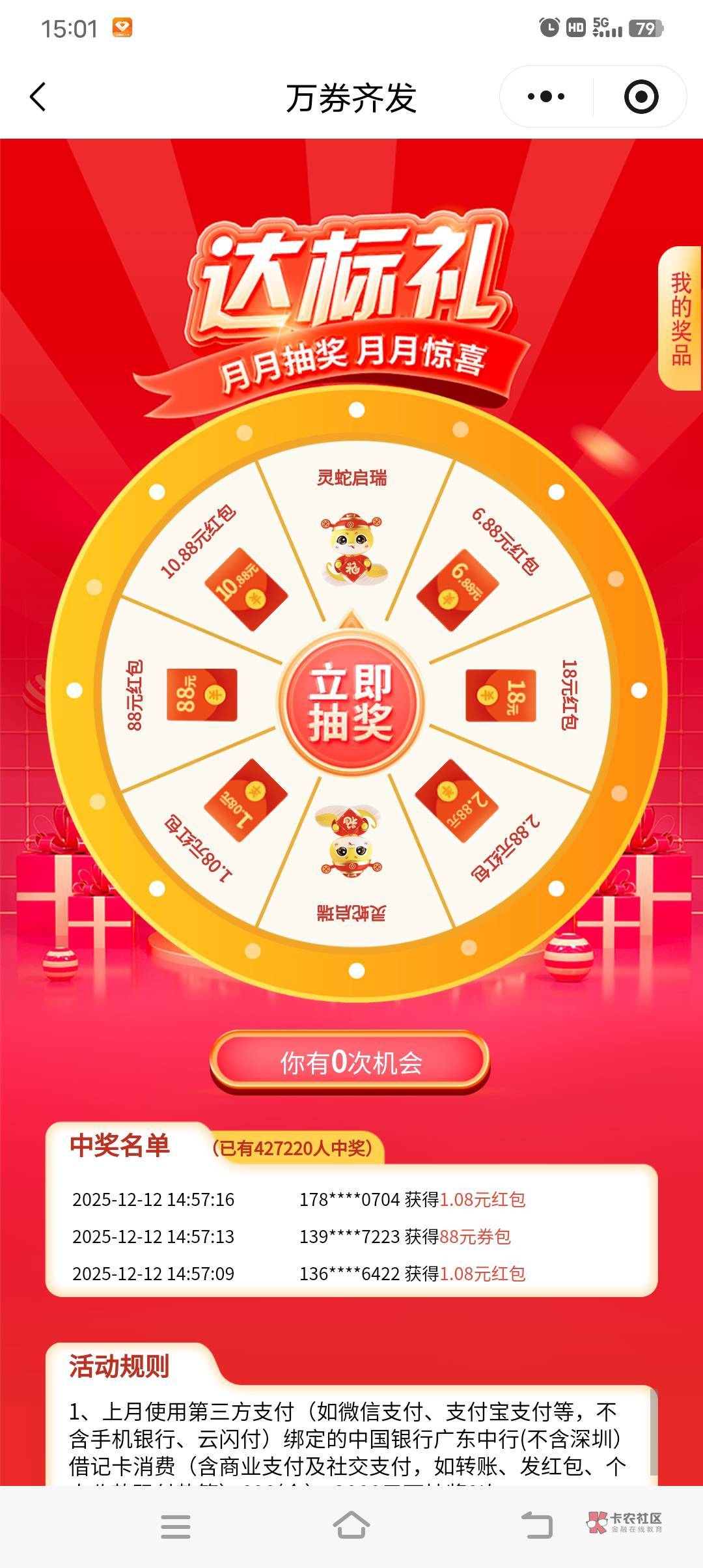 首发中行抽奖,四中二,老哥们快冲
