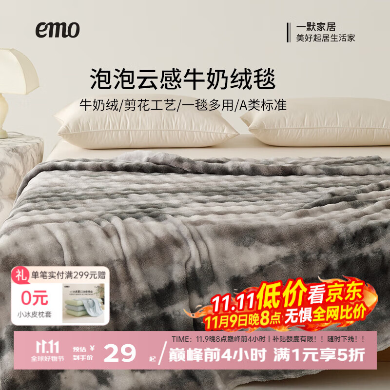 一默领5折券 泡泡云感牛奶绒毯 29.2亓 大豆慕斯柔柔被