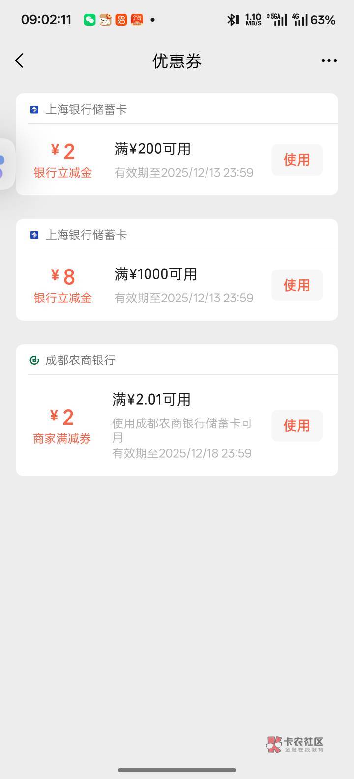 话说这个立减金怎么用?VX和云闪付都看不到这张券,分分卡这张二类卡也绑不了云闪付。