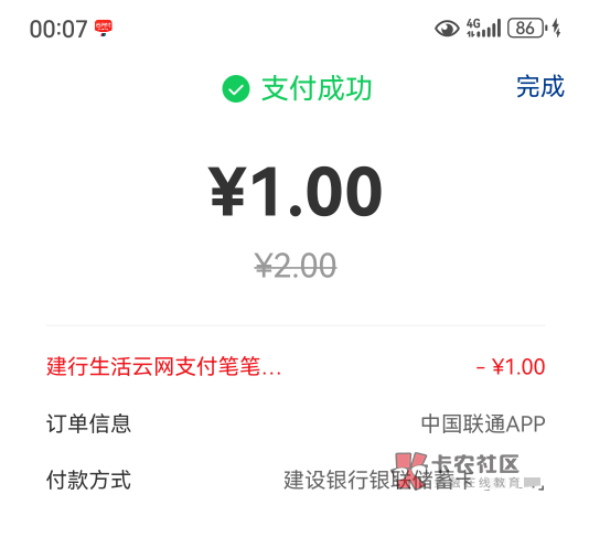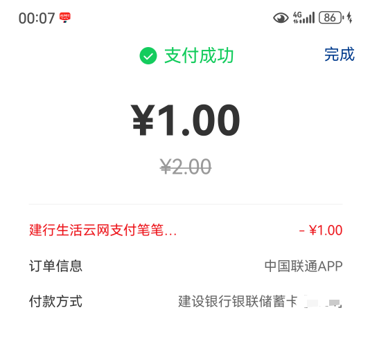 建行生活云网,0点名额刷新 联通4分钱充4.04话费 易捷加油/冲移动都行 自测