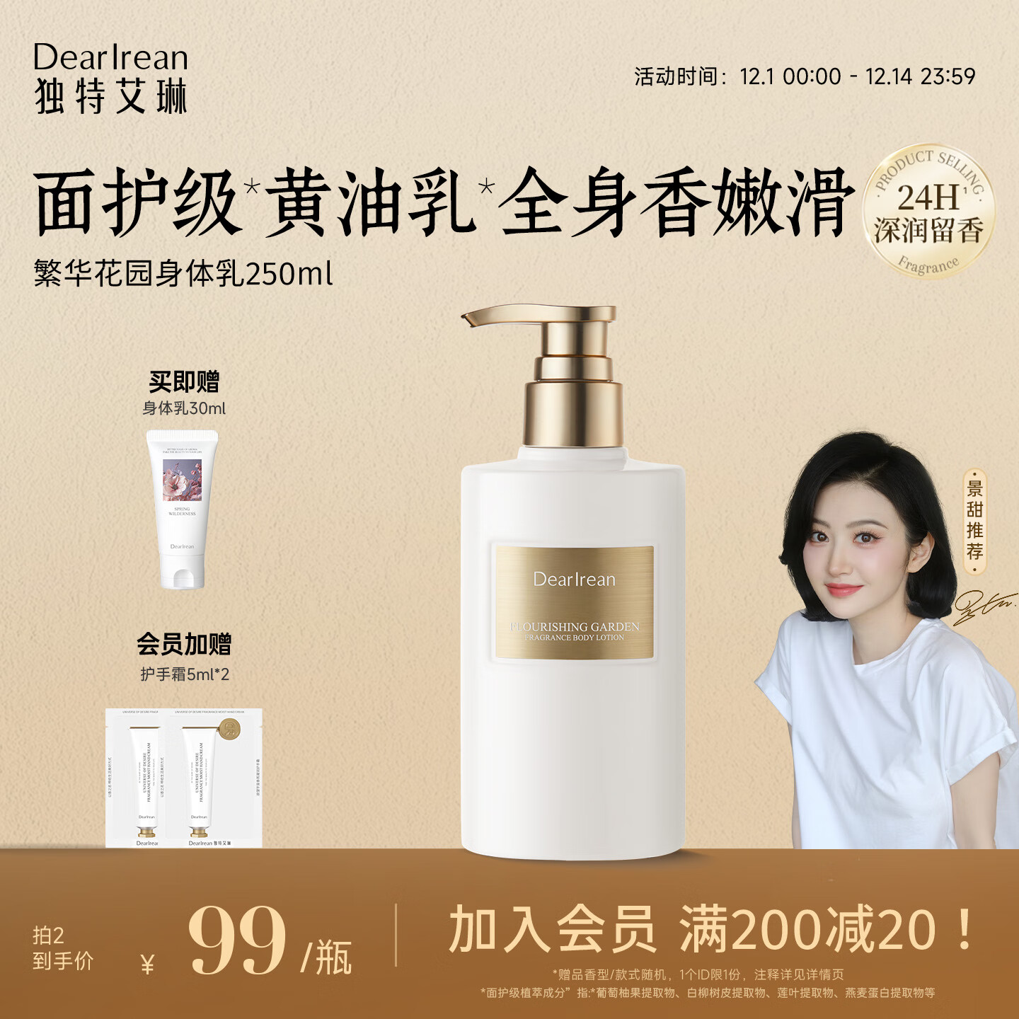 领 领 独特艾琳香氛身体如250ml 凑后到手49.6亓 赠30m