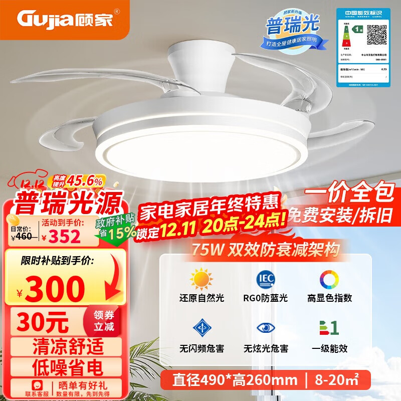 雷士(NVC)LED照明风扇灯大尺寸60瓦,入会5奍,以旧换新,國补后,180.89