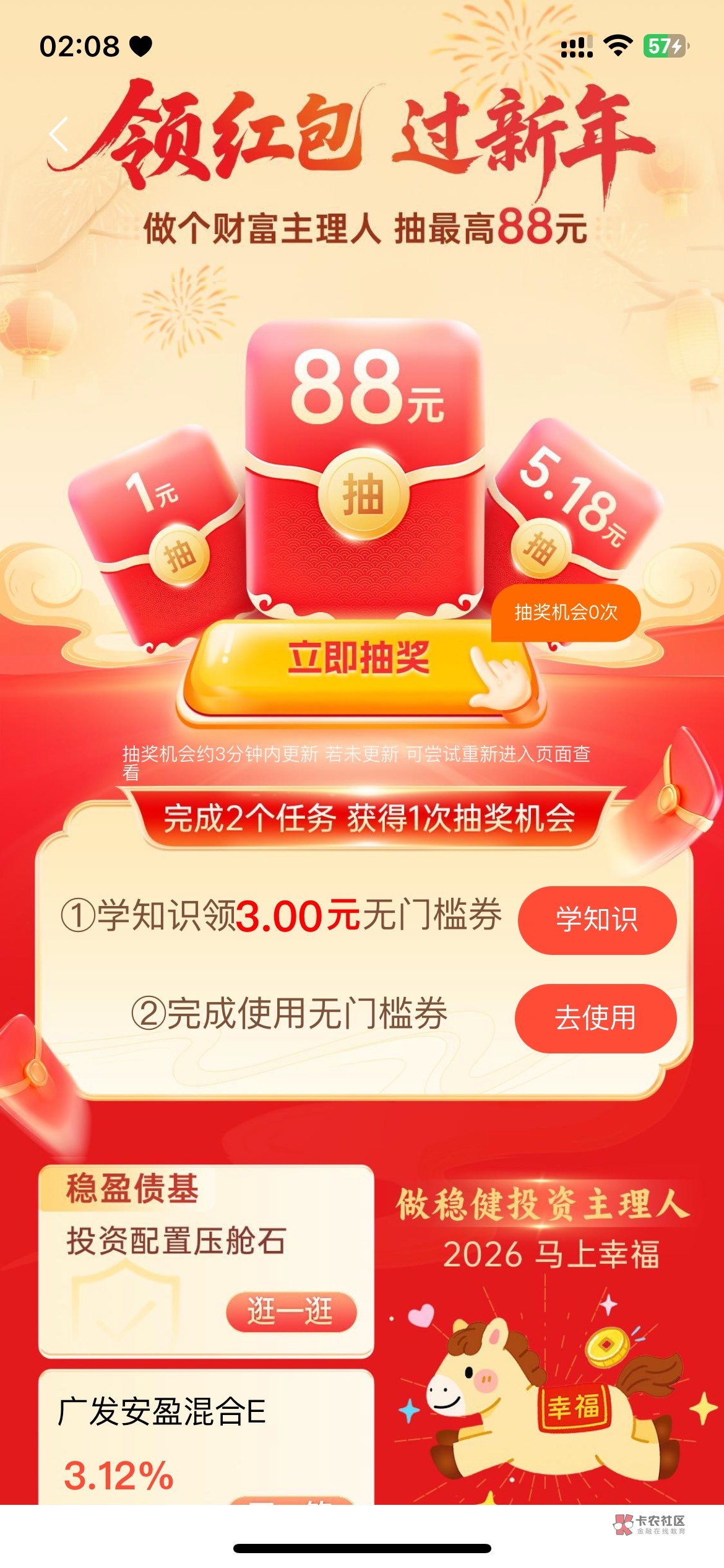 浦发银行领红包过新年完成任务抽奖活动