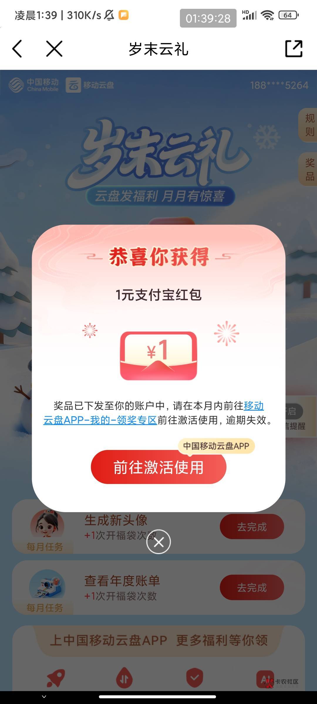 中国移动云盘岁末云礼月月有惊喜活动