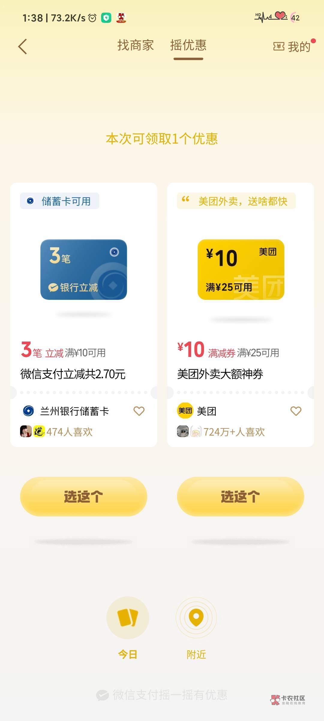 摇一摇兰州银行两个号两个立减一共-4.2