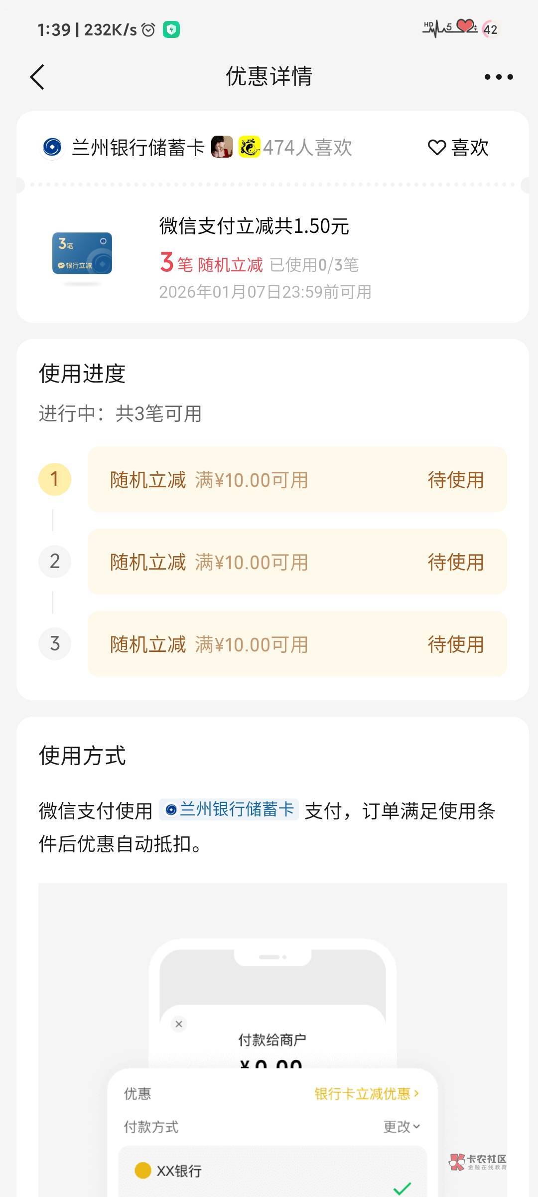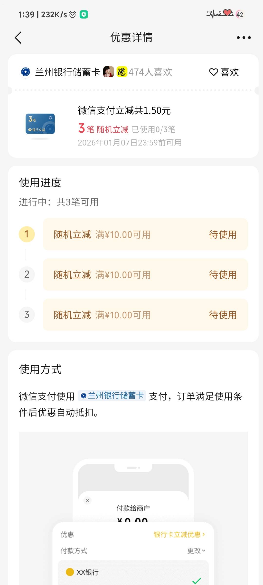 微信摇一摇兰州银行微信支付多笔立减活动 ...