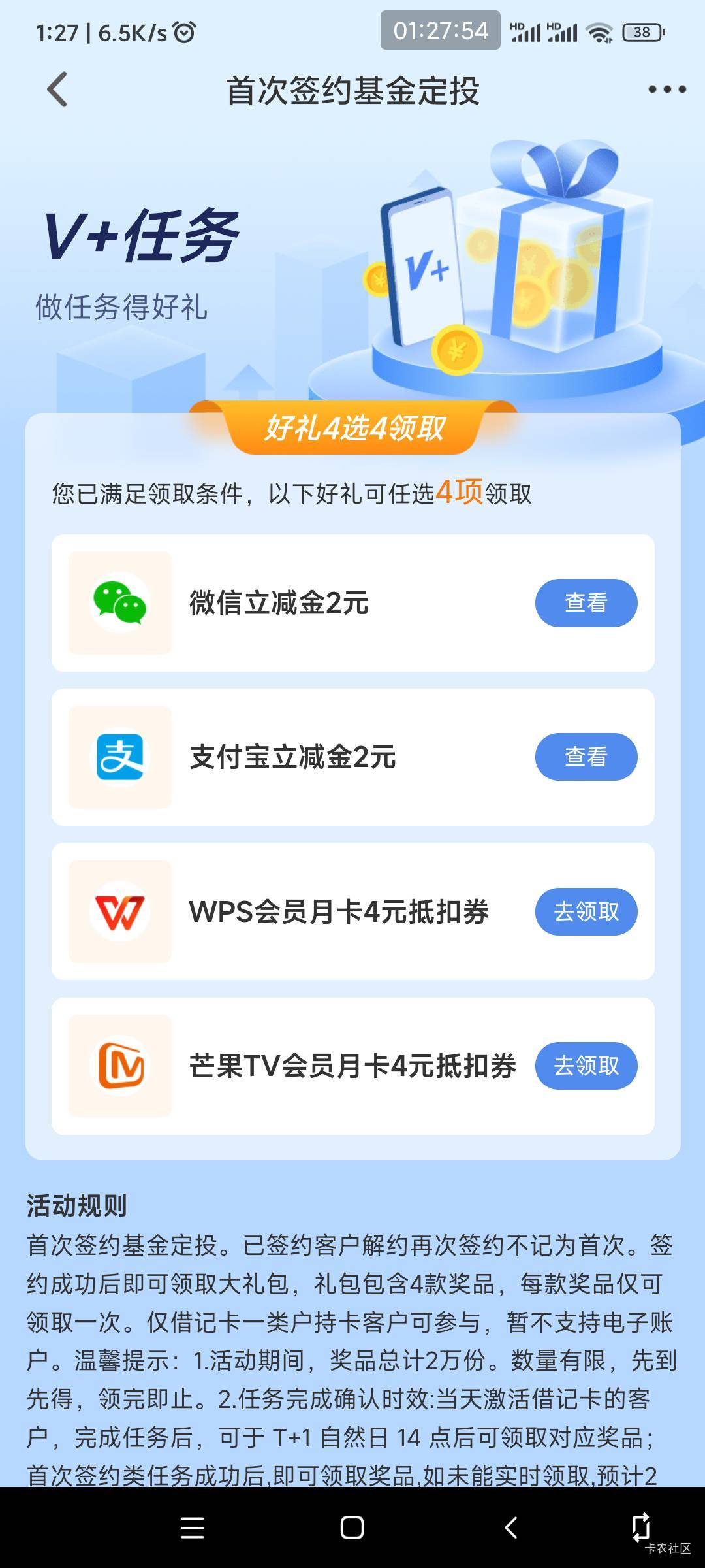 民生银行v+任务首次签约基金定投活动